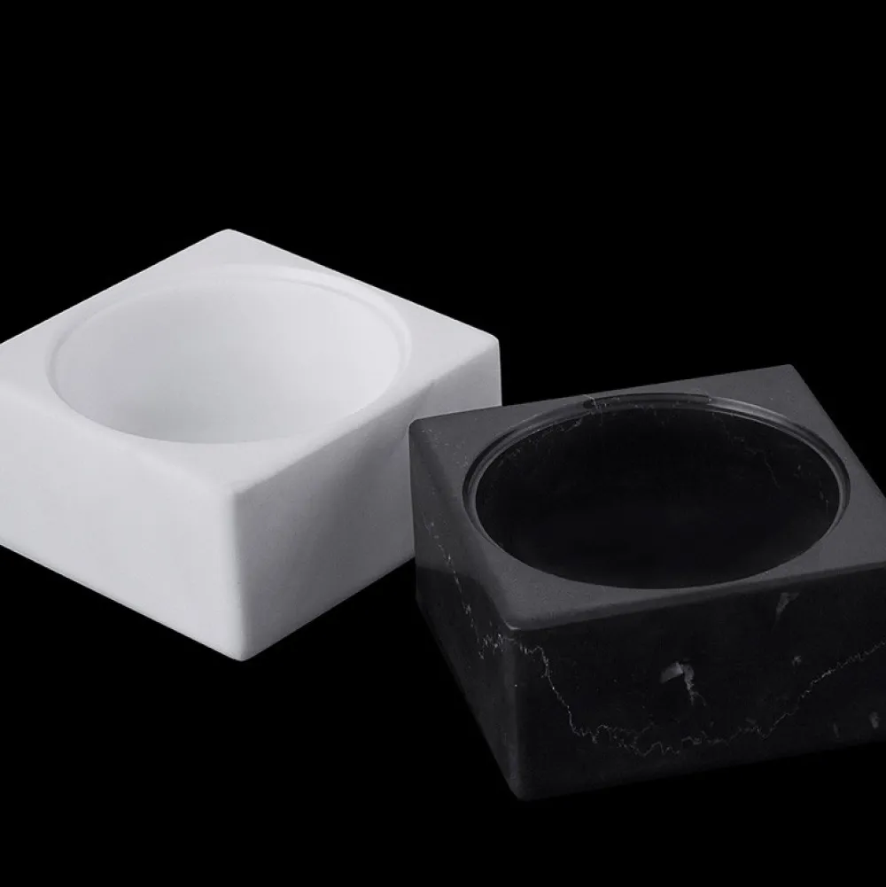 Smukke marmorskåle i sæt med én hvid og én sort. PK-Mini Duo er et sæt af fine designerskåle, som er fremstillet i henholdsvis sort Nero Marquina marmor og hvid Volakas marmor. Duo skålene har et både moderne og tidløst look, som passer perfekt i tidens trends, og som helt sikkert vil både pynte og være funktionelle i det moderne hjem. Brug skålene til opbevaring af småting på badeværelset eller i køkkenet eller som dekoration i stuen.