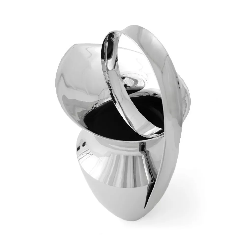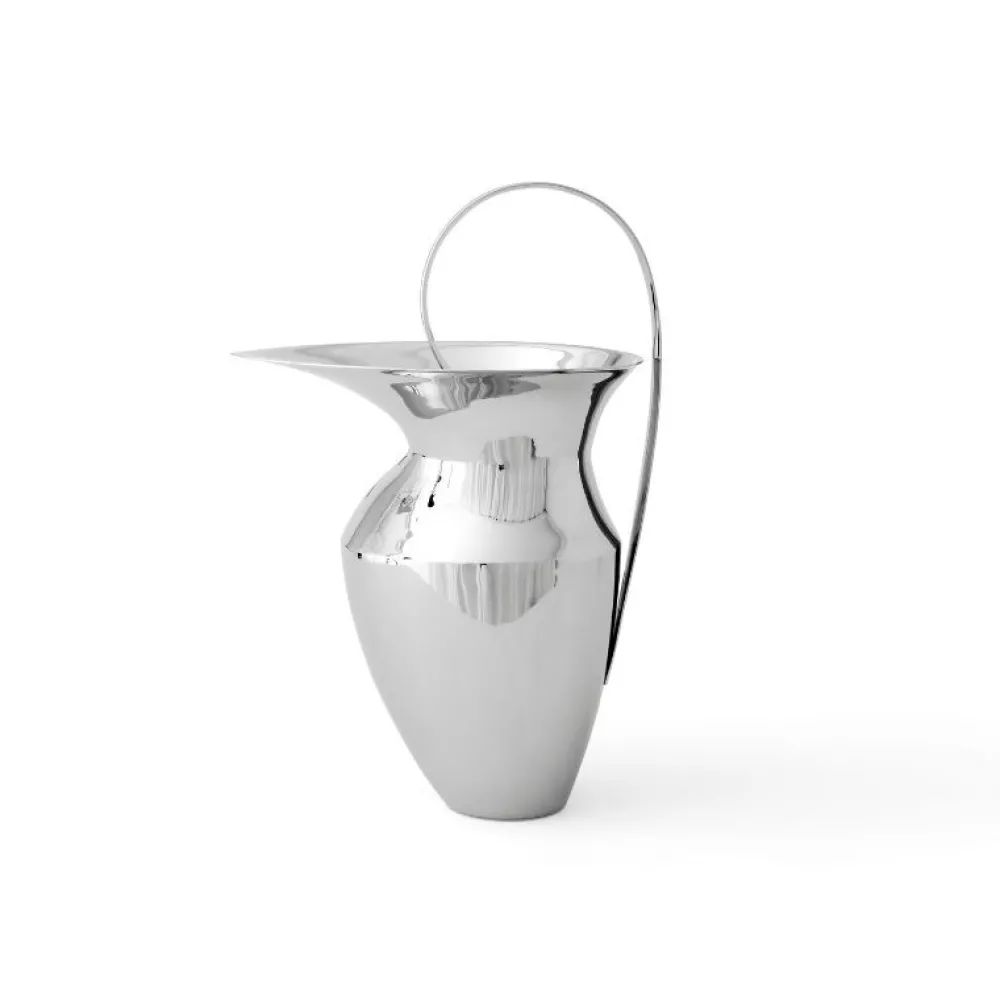 Lige dele praktisk og smuk, den fejende silhuet af den etruskiske kande er formet af spejlpoleret rustfrit stål for et slidstærkt, men elegant finish. Dens overdrevne proportioner inkluderer et højt, buet tophåndtag og en tilspidset tud for nem hældning. Det voluminøse design giver et lige så modigt statement, når man serverer kølede drinks ved bordet, som det gør som et dekorativt objekt eller blomstervase.
