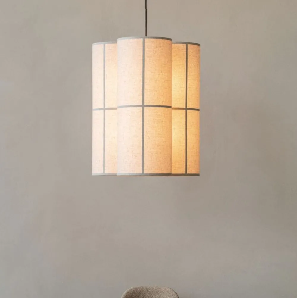 Hashira-serien med de slanke cylindriske lamper gennemskinnelige stof, som på japanske lanterner og persienner, spreder blødt lyset i flere retninger. Lampen bliver ophængt i loftet med en lækker tekstilsnor. Hashira spreder omgivende lys i rummet og gør lampen oplagt til over et spisebord, i et receptionsområde eller entré.