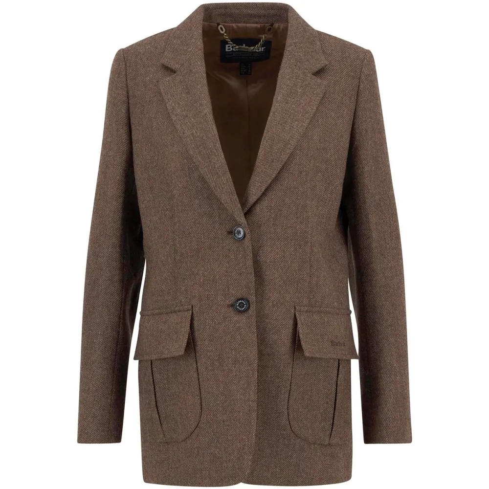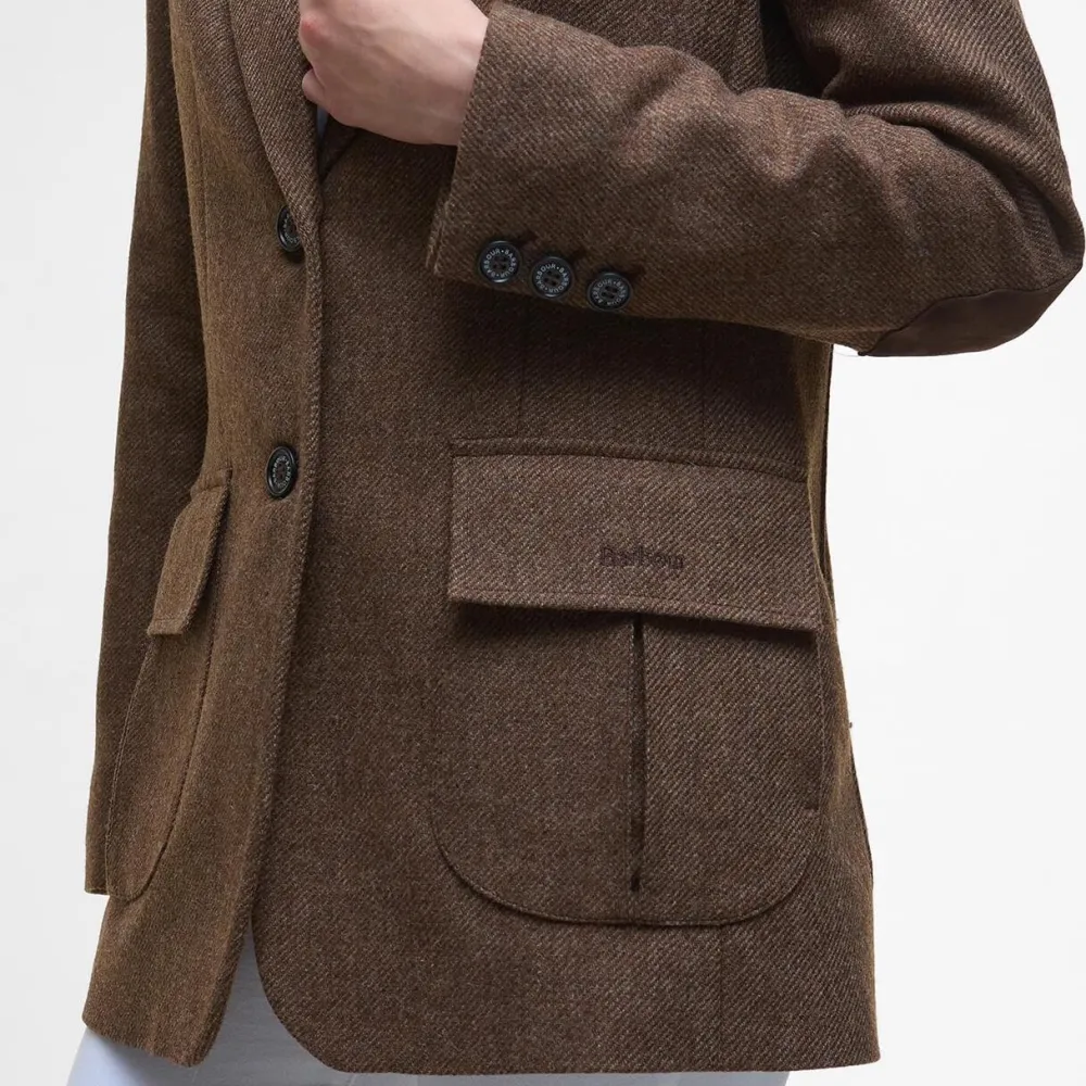 Sofistikeret blazer, der kombinerer klassisk skrædderi med vinterklar komfort . Blazeren er fremstillet i 100% uld, hvilket giver naturlig varme og en luksuriøs fornemmelse på kølige dage. Det enkeltknappede design er skræddersyet i en lige pasform, som fremhæver silhuetten uden at gå på kompromis med komforten. Indvendigt fuldendes looket med Barbours karakteristiske jacquard-for, der tilføjer et eksklusivt finish og understreger brandets arv inden for kvalitet og håndværk. Uanset om blazeren styles til begivenheder eller som et sofistikeret alternativ til overtøj, er den et stilfuldt investeringselement, der holder sæson efter sæson.