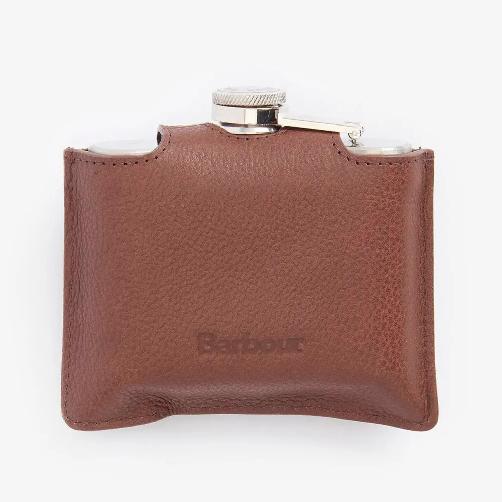 Eksklusiv og stilfuld lommelærke, der er indkapslet i et premium læder- og quiltet canvasetui. Det praktiske hængslede skruelåg gør den nem at åbne og lukke, mens det gennemførte Barbour-trykknaplukke fuldender designet med et klassisk touch. Lommelærken er et ideelt tilbehør til friluftsliv og weekendture.