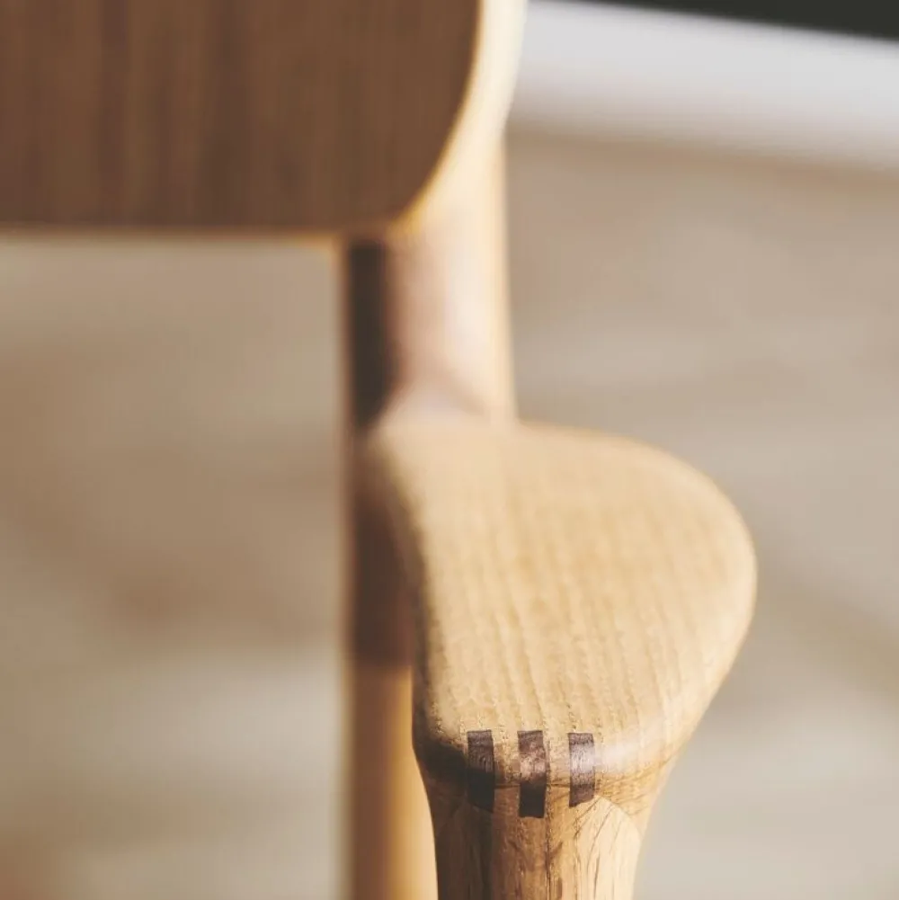 Komfortabel træstol med elegante detaljer. Stolens sæde og ryglæn er elegant designet til at give støtte og god bevægelsesfrihed i forskellige siddestillinger.