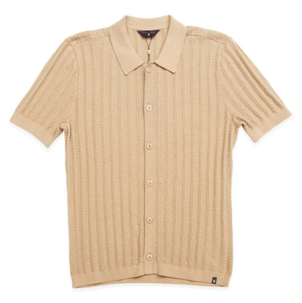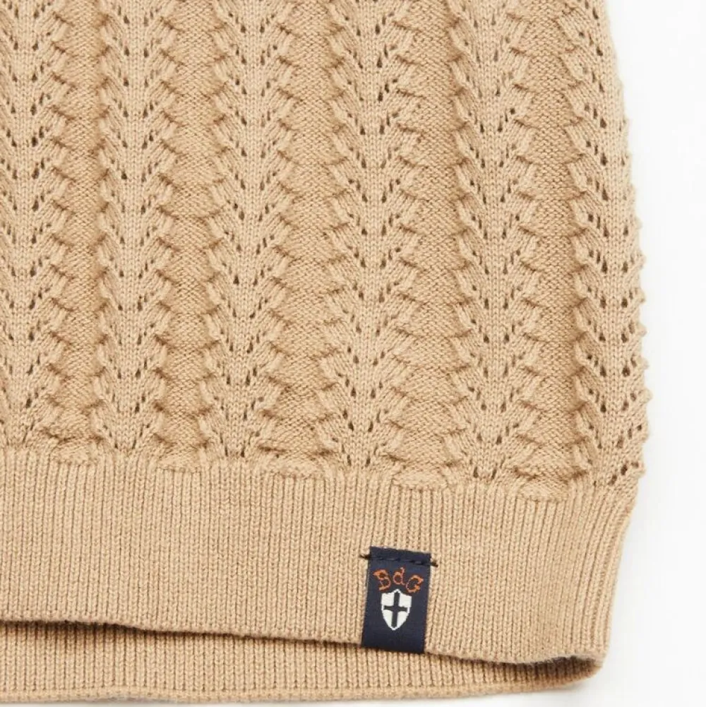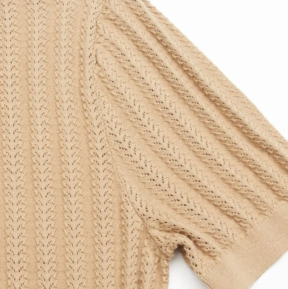Denne kortærmede polostrik er fremstillet i blød, økologisk bomuld og designet med en gennemknappet front. Det retroinspirerede mønster i repeat stitch giver et moderne twist til en klassisk silhuet.