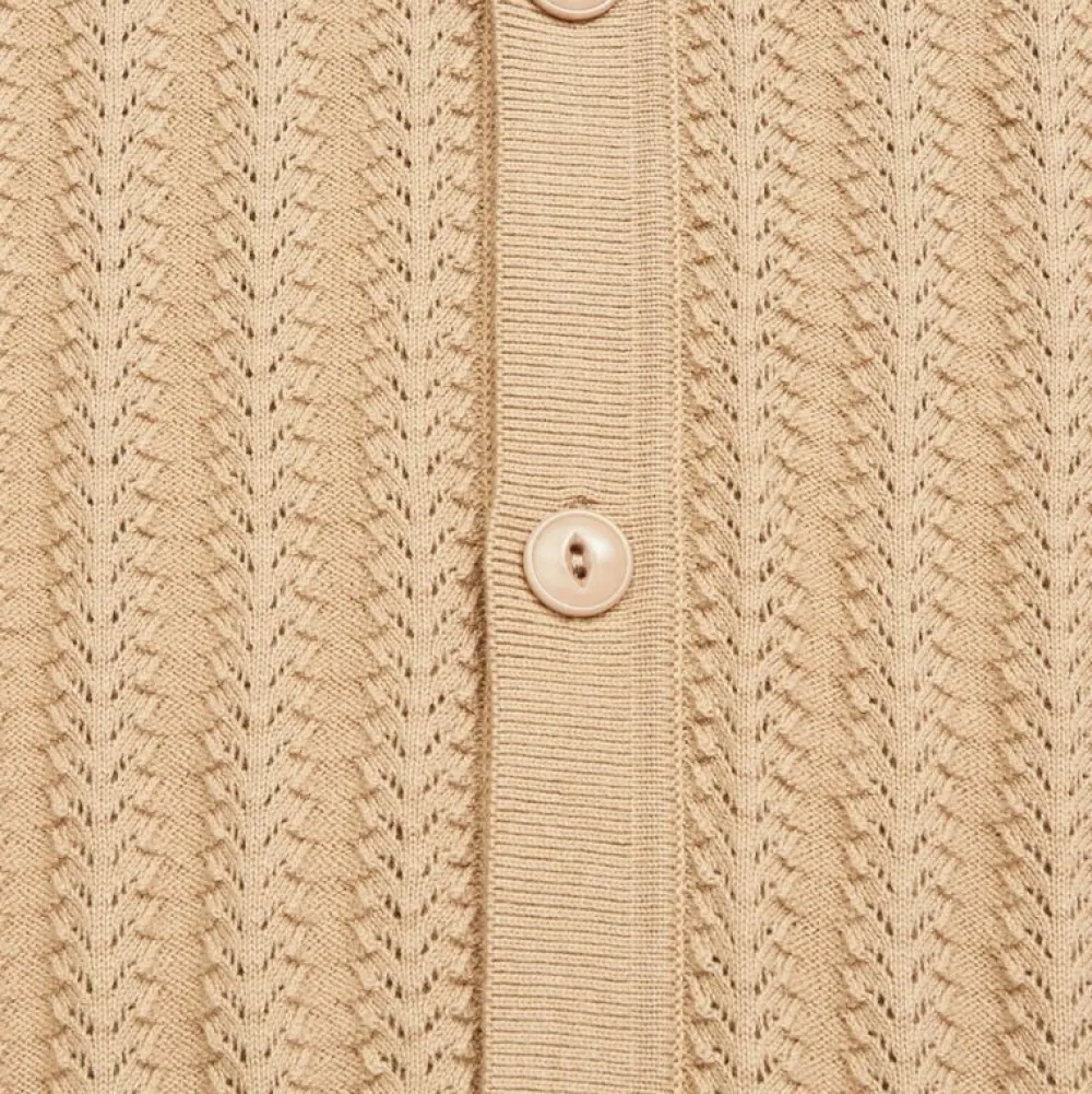 Strikken er lavet i en 12 gauge (gg) strikketeknik, som giver et let og velstruktureret udtryk. Med regular fit, logolabel på venstre front og knapper i bæredygtig Corozo-nød er der kræset for både komfort og detaljer.