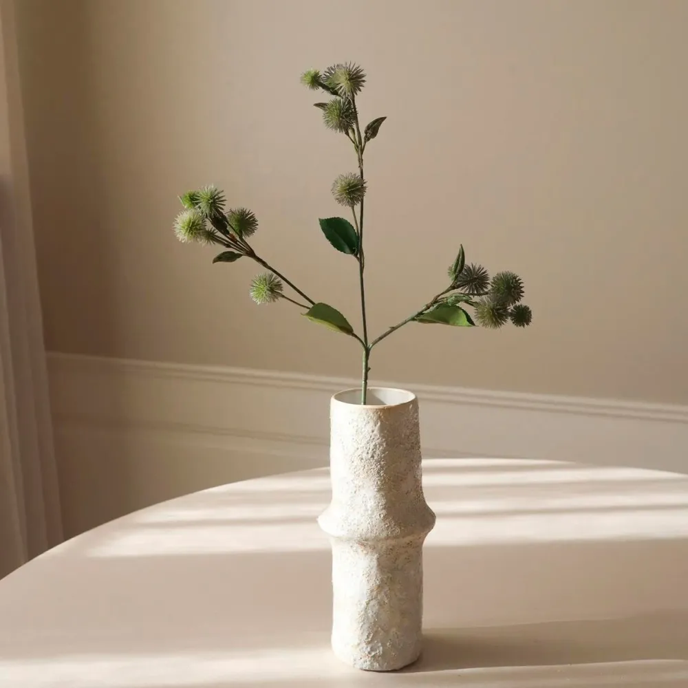Fængslende tidselkugle-gren, der bringer et frisk, naturligt præg til hemmet og tilføjer en subtil dybde og tekstur. Grenen er designet til at være alsidig, hvorfor stilken kan bøjes og formes efter eget ønske.