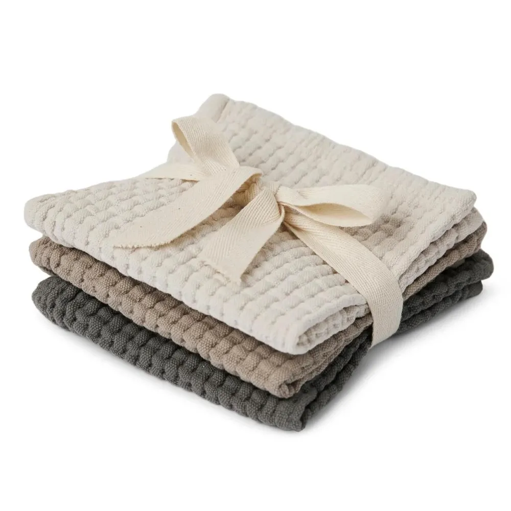 Farvefine klude i et stilfuldt design. Kludende er vævet i 100% bomuld og udført med en særlig efterbehandling, der sikrer en formidabel tørreevne. Qua strukturen og de klassiske, jordenære farvenuancer er kludene alsidige, hvorfor de både kan benyttes som karklude, vaskeklude eller gæstehåndklæder.