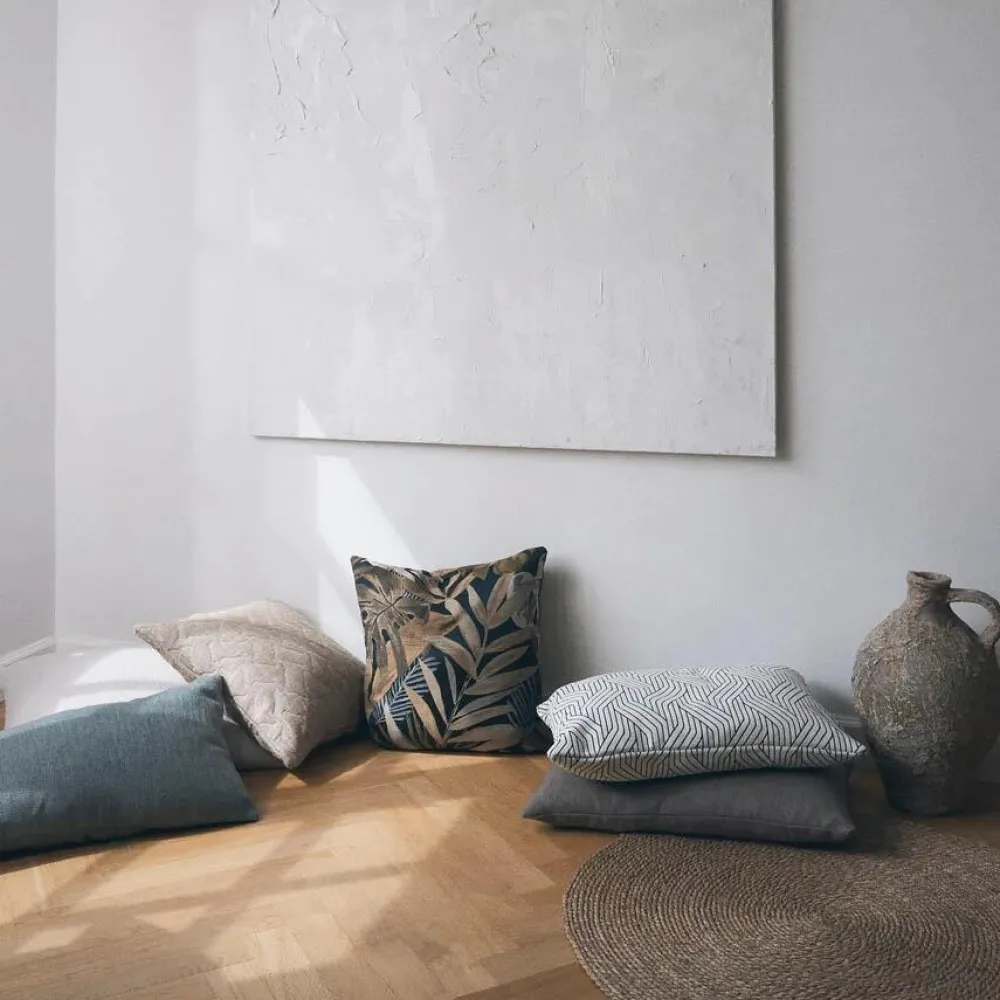 Ensfarvet pude i højaktuel sildebensvævning. Puden er fremstillet i høj kvalitet og tekstilet er yderst detaljerigt. Monteringspuden er med naturfyld, hvorfor den er blød og komfortabel. Den tidløse pude er ideel at kombinere med andre puder i forskellige mønstre, farver og størrelser.
