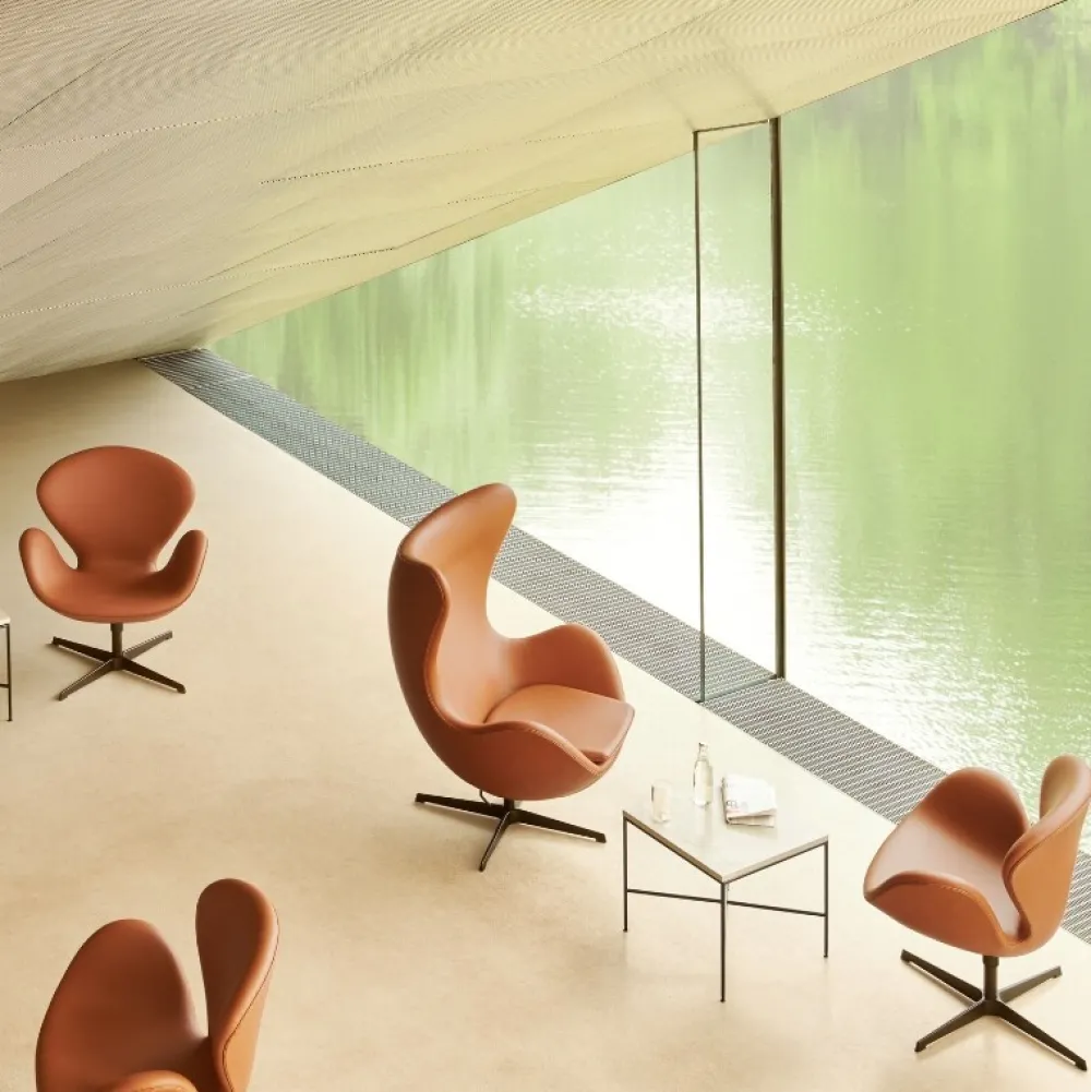 Smuk og ikonisk loungestol, som er designet af Arne Jacobsen i 1958. Designet består af indbydende, organiske og bløde former, der understøtter loungestolens simplicitet og stærke arkitektoniske appel. Stjernefoden er fremstillet i fem forskellige udgaver og er monteret på et stålsøjlerør, mens skallen er udført i syntetisk materiale og koldskum.