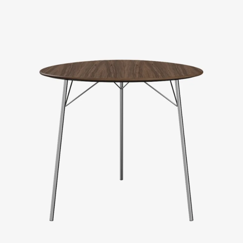 Materialer: Klar lakeret valnød finér + Blank forkromet stål.