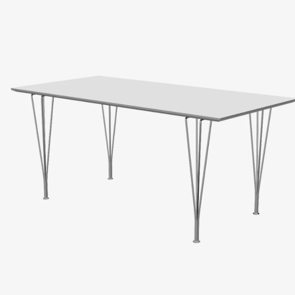 Super funktionelt og smukt spisebord designet af Piet Hein. B638 passer perfekt ind i den moderne indretning. Den fine retankulære form giver et meget stilrent udtryk, og de dekorative ben er designet af Bruno Mathsson og Arne Jakobsen. B638 er ideelt som spisebord, men også som skrive- eller konferencebord. Bordet fåes med aluminiumskant eller finérkant.