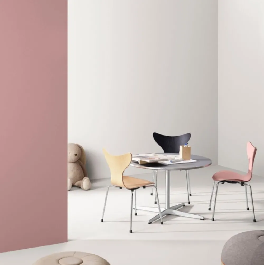 Klassisk stol i børnehøjde. Liljebørnestolen er en perfekt nedskaleret version af Jacobsens velkendte design, og er en oplagt introduktion til en livslang kærlighed til smukt, langtidsholdbart design. Stolen kan stables med Arne Jacobsens øvrige børnestole.