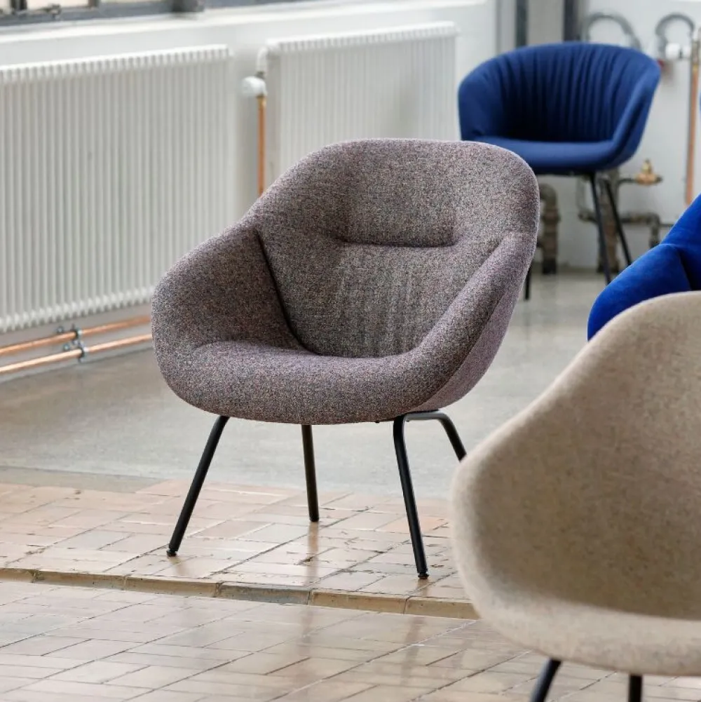 About A Lounge Chair 87 Soft har en kompakt krop med formede armlæn kombineret med ben i pulverlakeret stål. På linje med resten af serien er det skulpturelle design blevet holdt enkelt, uden at intet er overladt til tilfældighederne. Det brede udvalg af puder, ben og polstringer betyder, at du kan konfigurere unikke kombinationer, der passer til en række sammenhænge.