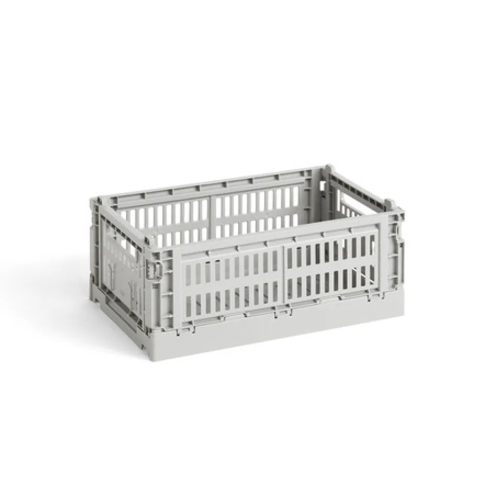 Colour Crate-kollektionen er en serie af farverige opbevaringskasser med et markant, perforeret design. Kasserne er lavet af 100% genanvendt plastaffald i en række forskellige farver og størrelser, og kan tilmed stables oven på hinanden i forskellige størrelseskombinationer. De multifunktionelle kasser er velegnede til at opbevare og organisere en lang række genstande på hylder, borde og inde i skabe.