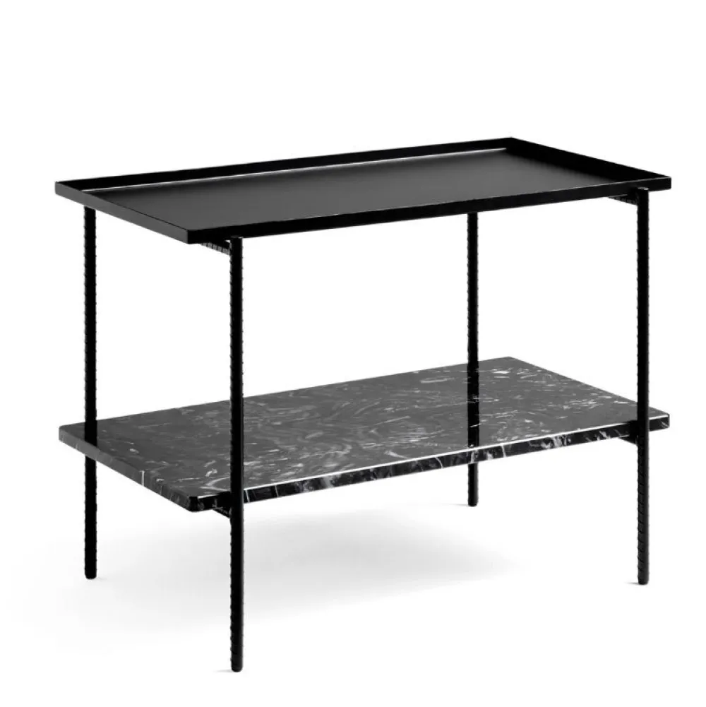 Sylvain Willenz’s rebar er en serie af sofa-, side- og bakkeborde, som sætter den forstærkede stålstangsramme sammen med marmortoppe og metalbakker for at skabe en afbalanceret æstetik. Bordene fås i forskellige størrelser i runde, firkantede og rektangulære former, med bordplader og stel i forskellige farvemuligheder.