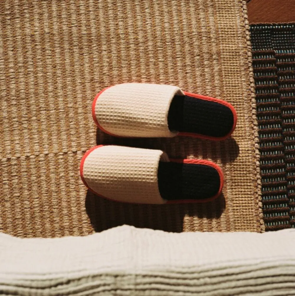 Fladvævet af en blanding af jute og bomuld, Tapis Mat tilføjer et naturligt, men alligevel raffineret udtryk til soveværelser, entre og andre områder i et hjem. Den fås i forskellige farvemuligheder og har en polyesterbagside for at sikre måtten på plads.
