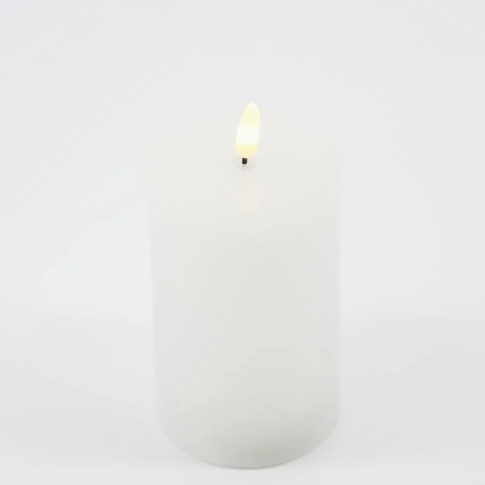 Dette hvide, mellemstore LED-bloklys er et smukt alternativ til stearinlys. Såfremt man ønsker at nyde sine lanterner uden varme, røg og levende lys, så er dette LED-lys helt ideelt. Lyset er en god løsning for børnefamilier, idet den ligner ægte lys med voksoverflade og en varm glimrende glød. Såfremt man blive distraheret og glemmer at slukke lyset, slukkes det automatisk efter fem timer.