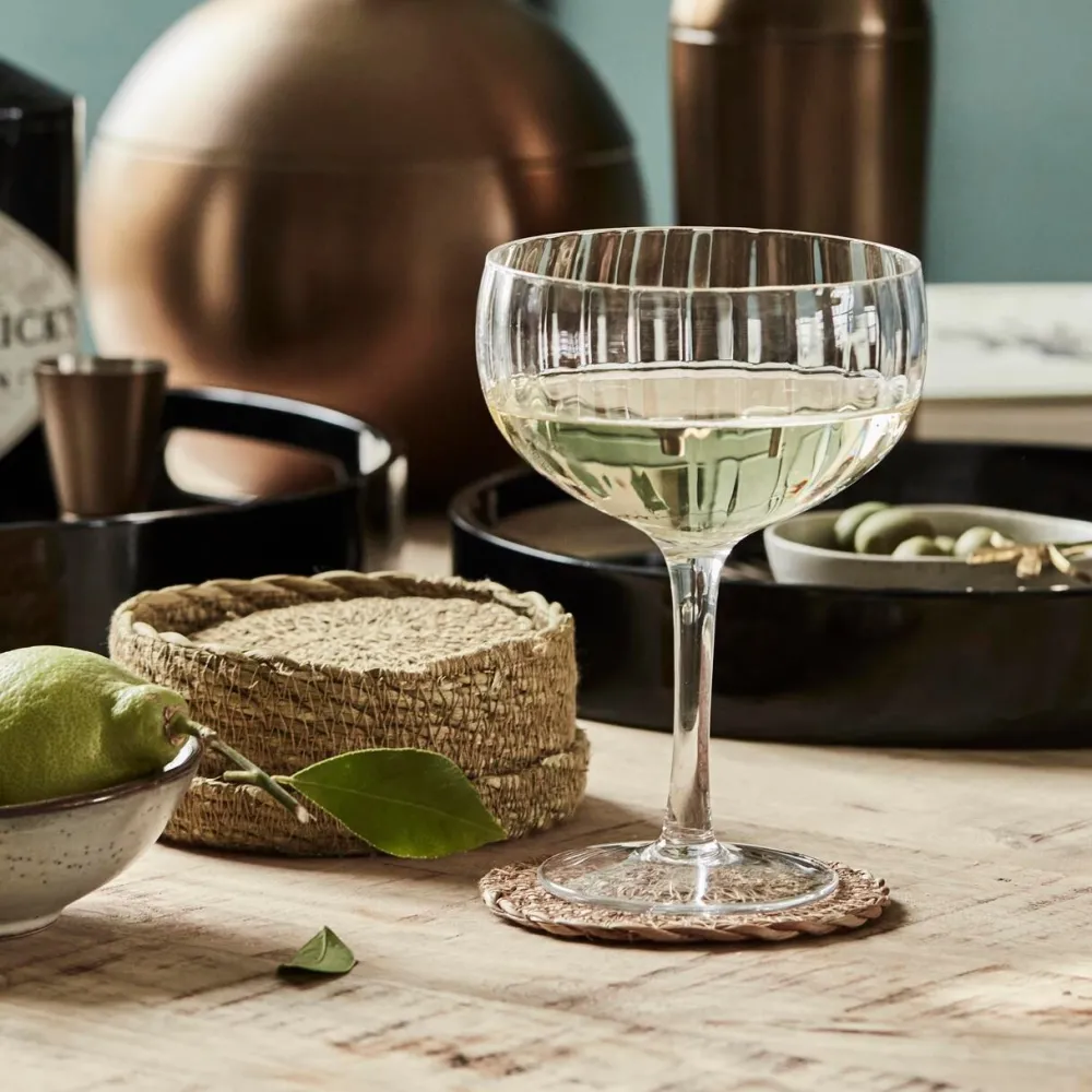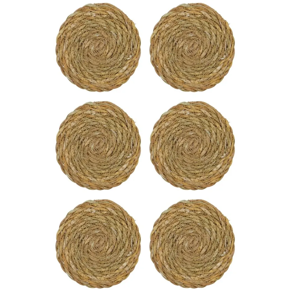 Fine bordskånere, der er håndvævet af naturligt søgræs. Bordskånerne er den ideelle blanding af funktionalitet og stil, idet de både er praktiske og dekorative. Bordskånerne er blide og holdbare, hvorfor overflader beskyttes. Hvert sæt indeholder seks bordskånere og en matchende opbevaringskurv. Den naturlige farvenuance er velegnet til enhver indretning og skaber en indbydende atmosfære.