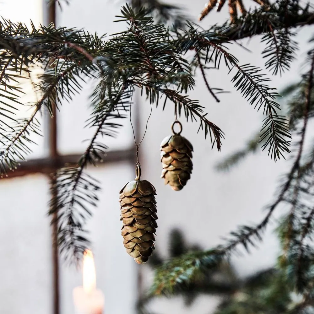 Enkle og tidløse ornamenter, der på fineste vis gengiver naturskønne kogler. Ornamenterne er ideelle, såfremt et tone-i-tone look ønskes – i tilfælde heraf kan de med fordel kombineres med andre ornamenter i brun, beige og sand. Herved skabes et afbalanceret udtryk. Designet er alsidigt, hvorfor metalkoglerne både kan hænges på juletræet, placeres på et fad eller benyttes som borddekoration.