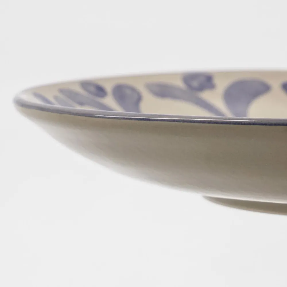 Yndefuld tallerken, der tilføjer et kunstnerisk strejf til madoplevelsen. Det håndmalede blå mønster bringer liv og personlighed til bordet. Designet balancerer æstetik med praktisk anvendelighed, hvorfor tallerkenen er ideel til både hverdagsbrug og særlige lejligheder. Qua det unikke design bliver spisestunden lidt mere særlig.