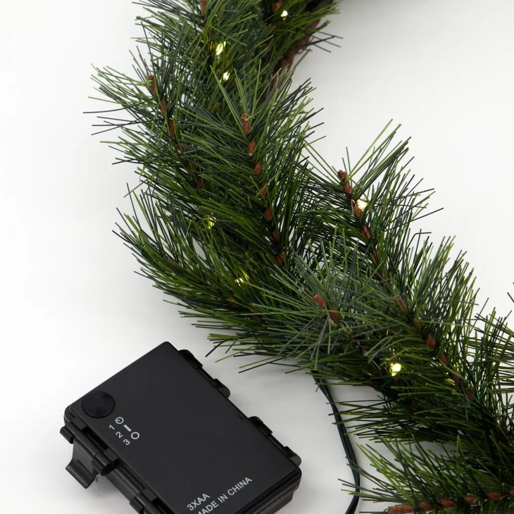 Skab en varm og indbydende julestemning. Kransen er et elegant og holdbart alternativ til den klassiske fyrrekrans. Det naturtro design er udstyret med 25 integrerede LED-lys, der spreder et blødt og hyggeligt skær i vintermørket. Kransen er ideel til at hænge i entréen som en festlig velkomst eller placere i stuen som en del af en personlig juledekoration. Den kan anvendes, som den er, eller dekoreres med bånd, kugler og grene for et individuelt udtryk. Med batteridrift og indbygget timerfunktion tændes lyset automatisk i seks timer ad gangen, så kransen nemt skaber stemning dag efter dag. Et stilfuldt og genanvendeligt valg, der forener funktion, æstetik og julens magi.