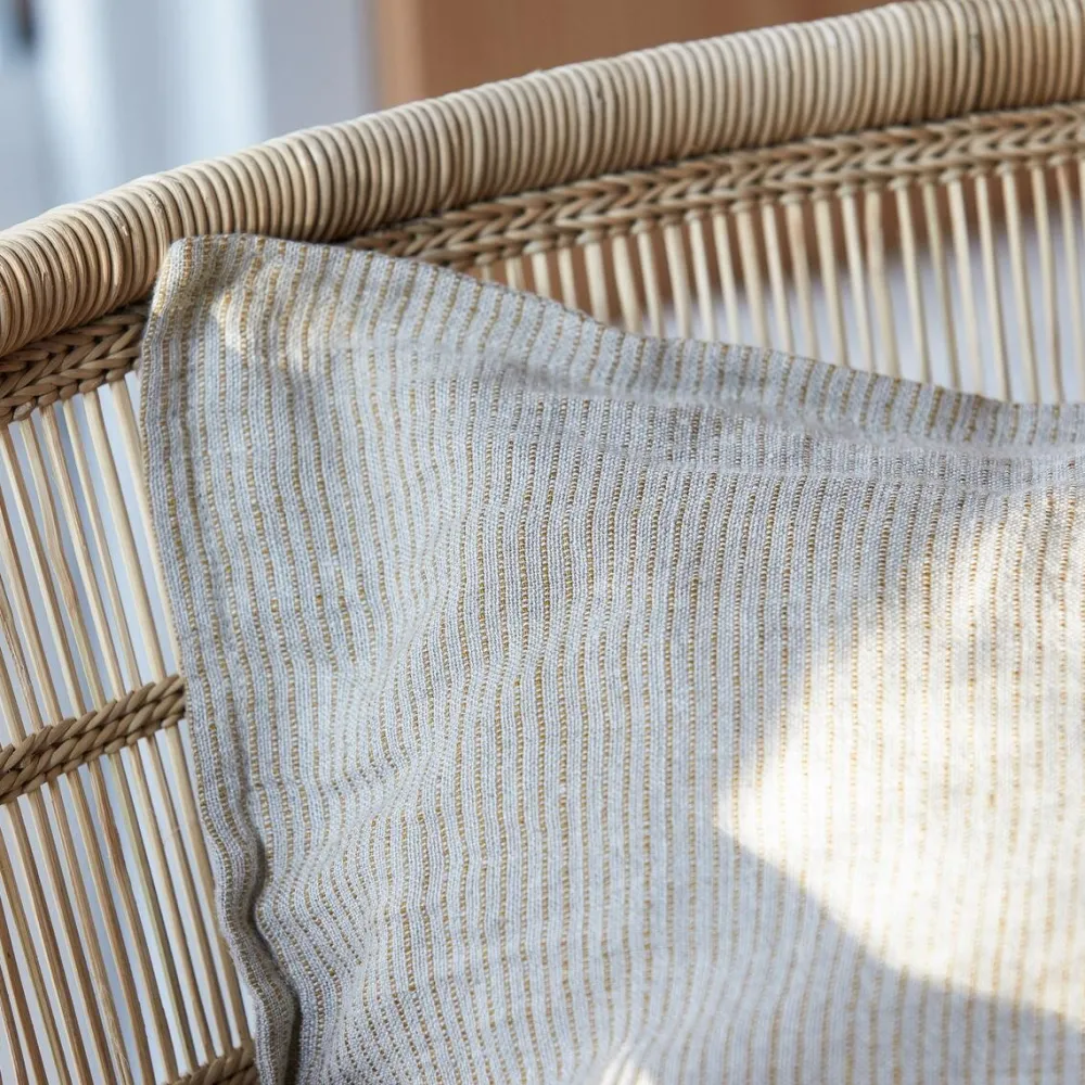 Fin og dekorativ pude, der øjeblikkeligt forvandler udtrykket i boligindretningen. Pudebetrækket er udført med smalle, sennepsfarvede striber og fremstillet af hør. Puden tilføjer et afslappet og indbydende udtryk. Qua dens tidløse design, er puden ideel at kombinere med andre puder i materialer og mønstre.