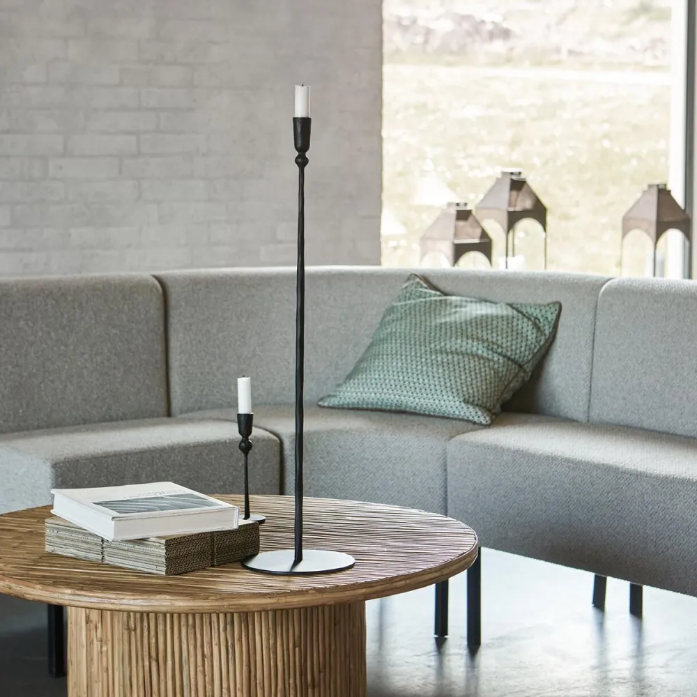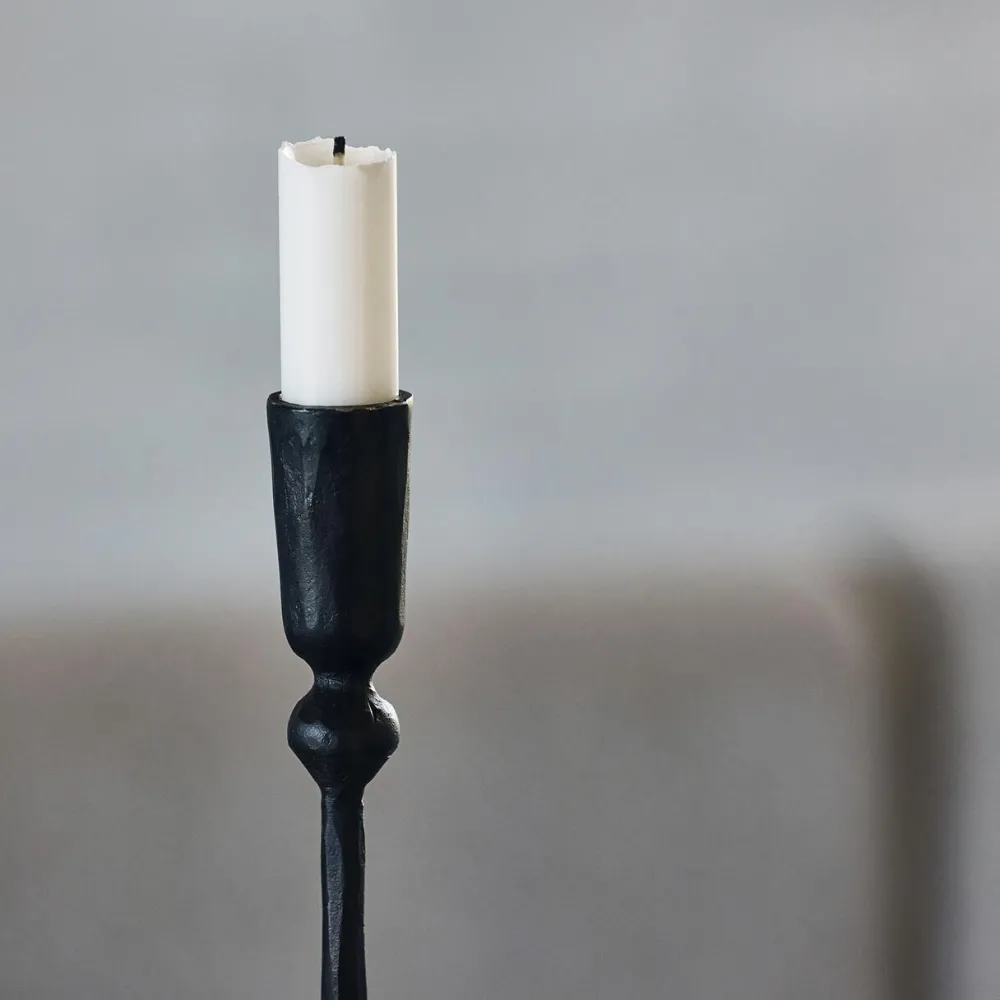 Minimalistisk lysestage, der på fineste vis forener enkelthed og karakter i ét smukt design. Lysestagen er håndlavet, hvilket viser sig i det uperfekte udtryk – ikke desto mindre tilføjer det varme og personlighed til rummet. Qua højden skaber lysestagen øjeblikkeligt blikfang – hvad enten den placeres alene i et hjørne eller kombineres med mindre størrelser for et harmonisk, skulpturelt udtryk. Som følge af den enkle elegance er lysestagen ideel til at løfte en stille krog.