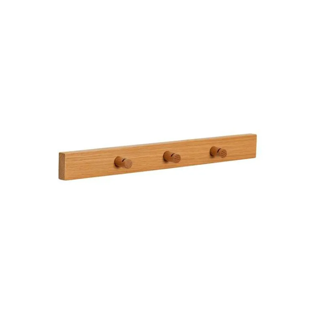 Sofistikeret knagerække i et minimalistisk design, der forener tidløs elegance og praktisk opbevaring. Fremstillet af FSC®-certificeret egetræ og finer, udstråler denne slanke knagerække en naturlig skønhed, der er ideel til enhver indretning. Med 3 praktiske kroge sikres plads til at ophænge nødvendigheder, samtidig med rummet holdes organiseret.