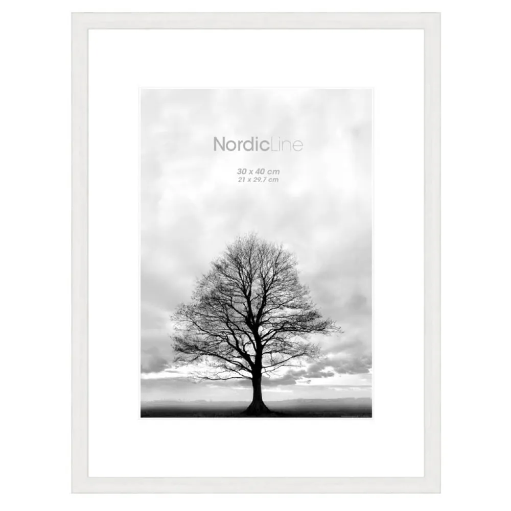 En rigtig fin og enkel skifteramme i en mat hvid fare. Slim White Nordic Line rammen er fremstillet i FSC certificeret træ, hvilket betyder at træet stammer fra et bæredygtigt skovbrug. Brug den fine hvide billedramme sammen med kontrastfyldte billeder eller mere afdæmpede og rolige motiver, som passer til den naturlige ramme.