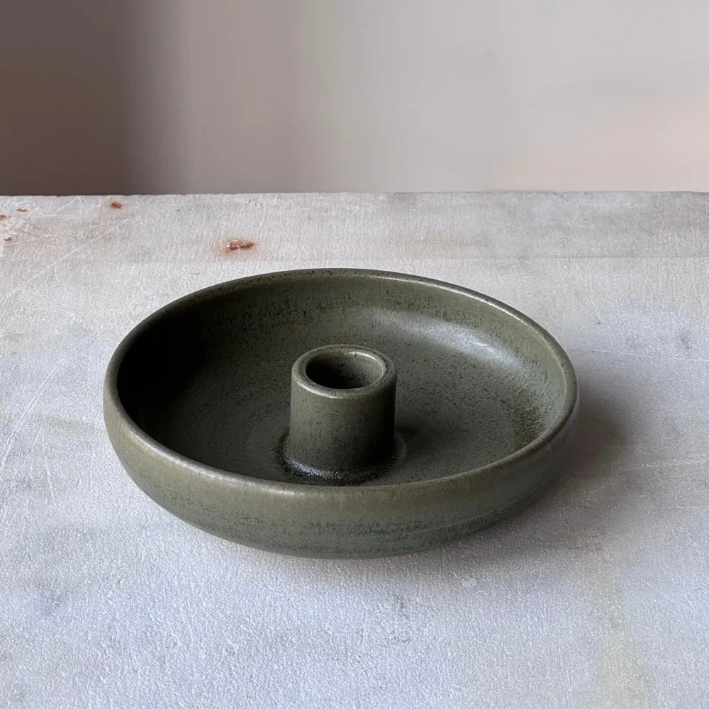 Oktober-serien er kendetegnet ved sine runde former og afdæmpet udtryk, hvilket indbyder til rolige stunder og nærvær. Farvenuancerne er en hyldest til efteråret. Serien er lavet af stentøj og hånddrejet i Danmark. Lysestagen er håndglaseret, hvorfor der kan forekomme variationer i farve, form og størrelse. Dette er charmen ved håndlavet keramik, hvilket bevirker, at billederne kun er vejledende.
