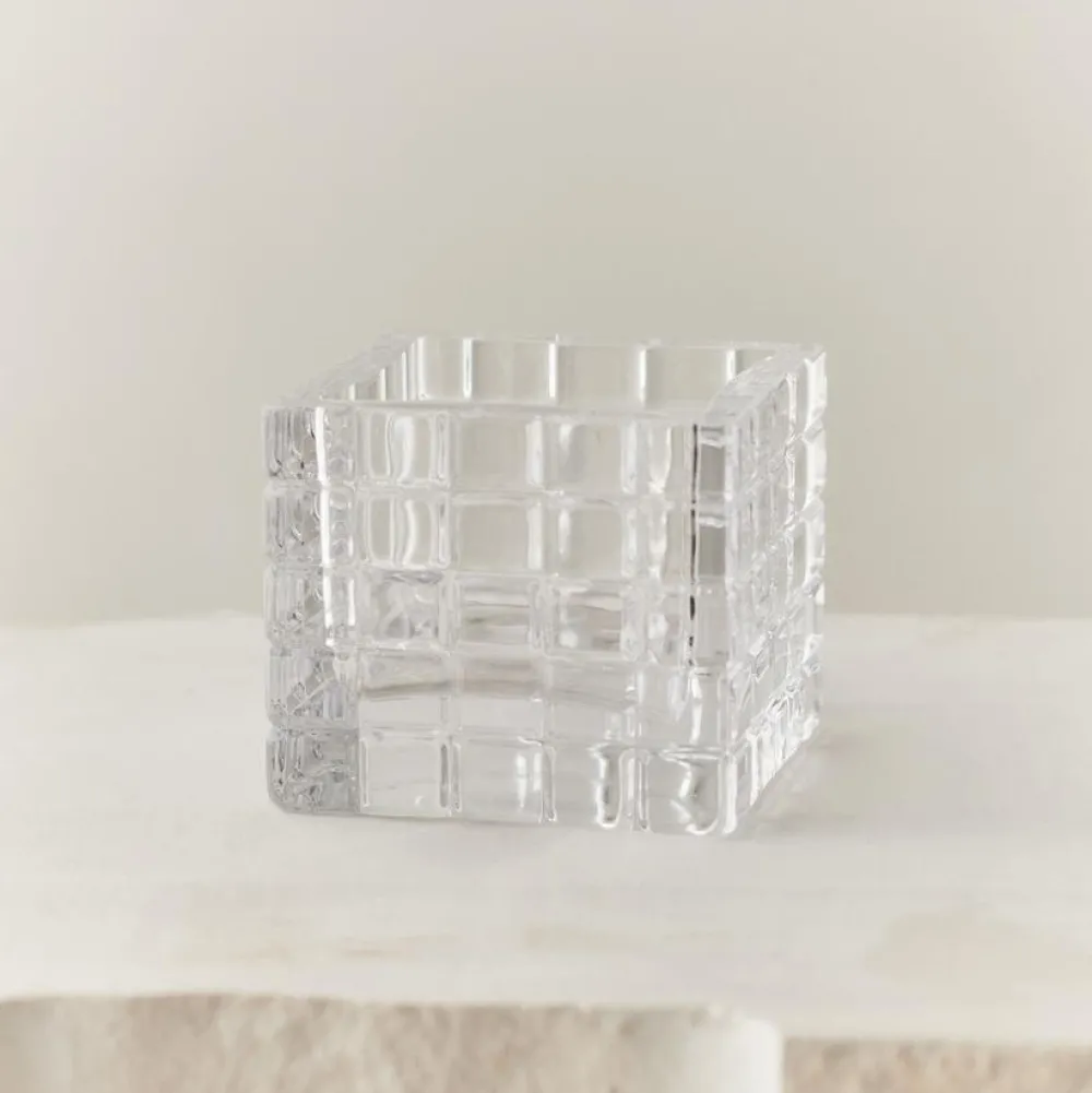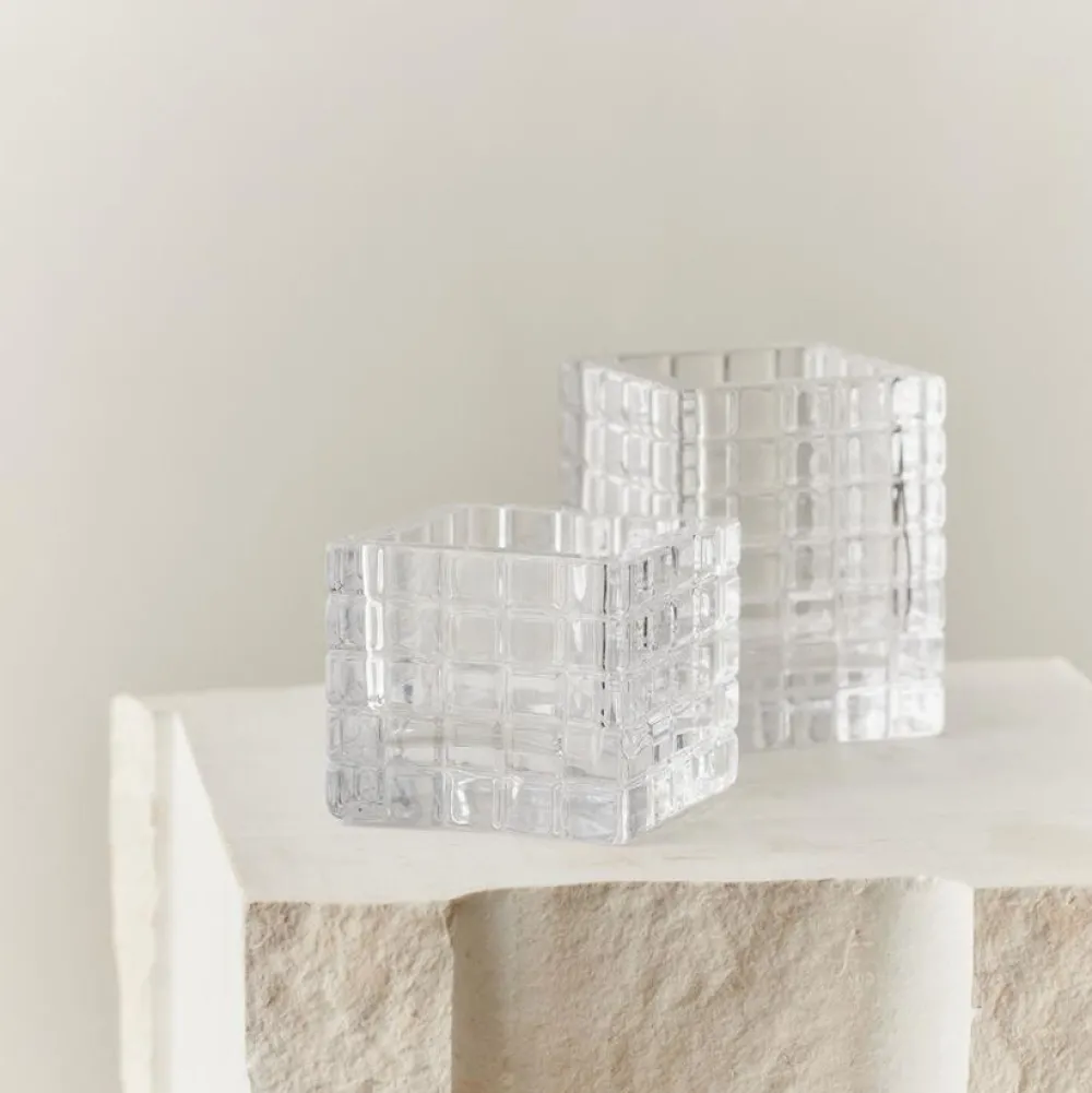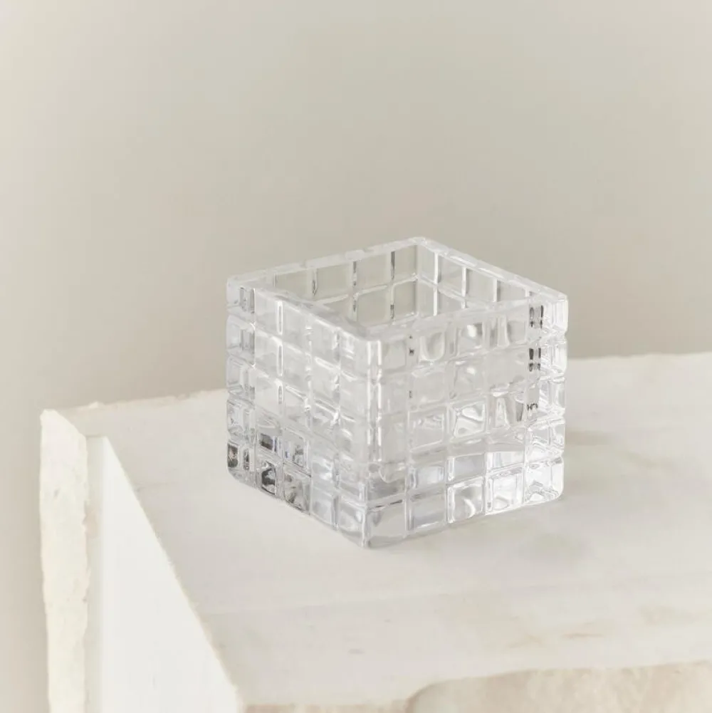 Enkel, elegant og subtilt levende lysestage, der er inspireret af ‘The City That Never Sleeps’ – New York City. Designet er markeret med sine kubiske detaljer og fremviser et interessant samspil mellem en solid, men blid taktil. Qua formsproget brydes lyset på fineste vis, hvorfor den i an sin enkelthed er et dekorativt element. Lysestagen er mundblæst, hvorfor ej to objekter er identisk.