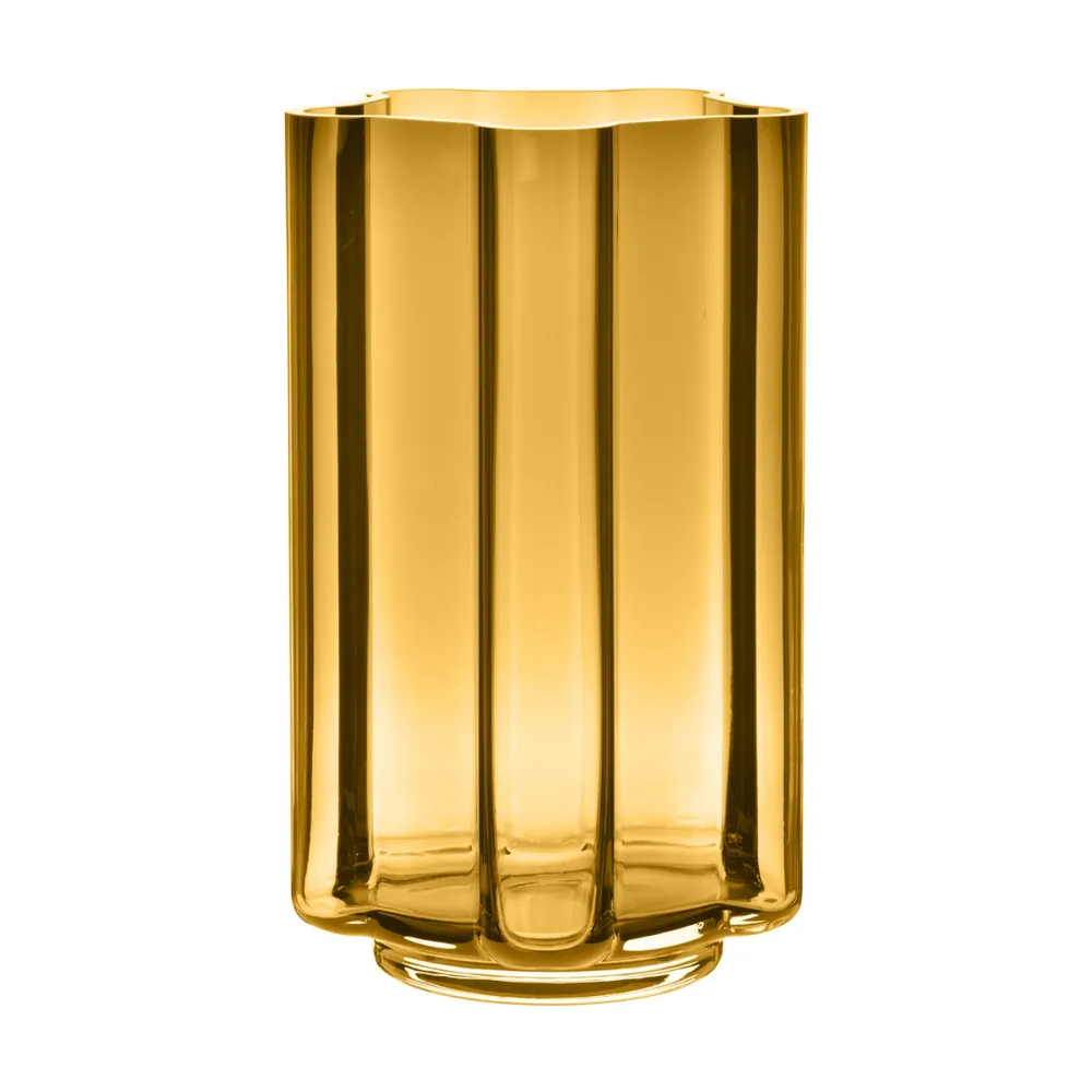 Enkel og stilfuld vase, som er udført i et sofistikeret design. Kendetegnende for vasen er dens tykke glas, som både tilfører udseende og en fornemmelse af robusthed. Netop robustheden afspejler de betonsøjler, som designets udtryk og detaljer tilmed har grobund i. Grundet vasens størrelse er smuk i al sin enkelthed, men er endvidere yndig at benytte i kombination med andet dekorativt interiør.