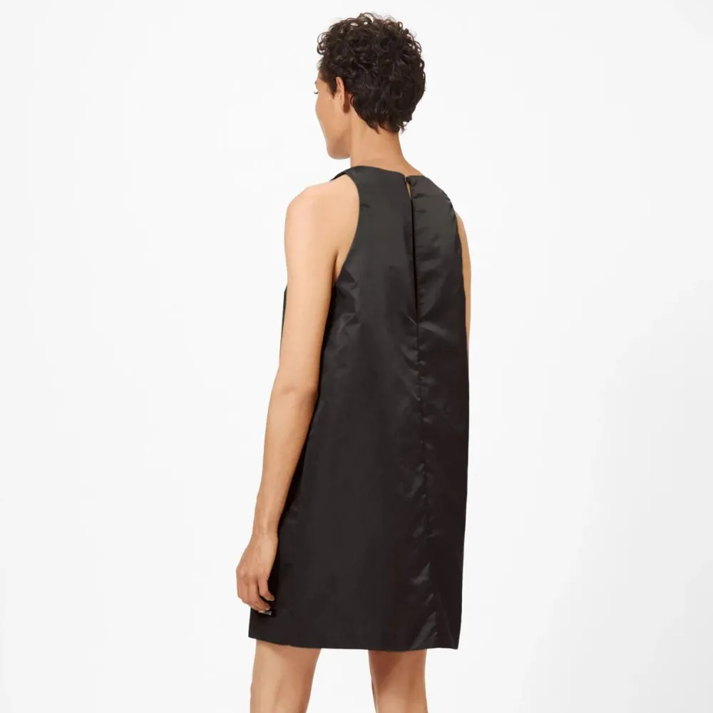 Fin og enkel A-linje minikjole, der både er moderne og klassisk. Qua den lette A-linje silhuet opnås en flatterende pasform, hvorfor kjolen er et alsidigt og tifløst valg i garderoben. Den rundhalsede udskæring tilføjer et simpelt og elegant udtryk, mens gummilogoet tilfører et subtilt præg. Knaplukningen bagpå understøtter desforuden kjolens funktionalitet, mens foringen sikrer komfort.