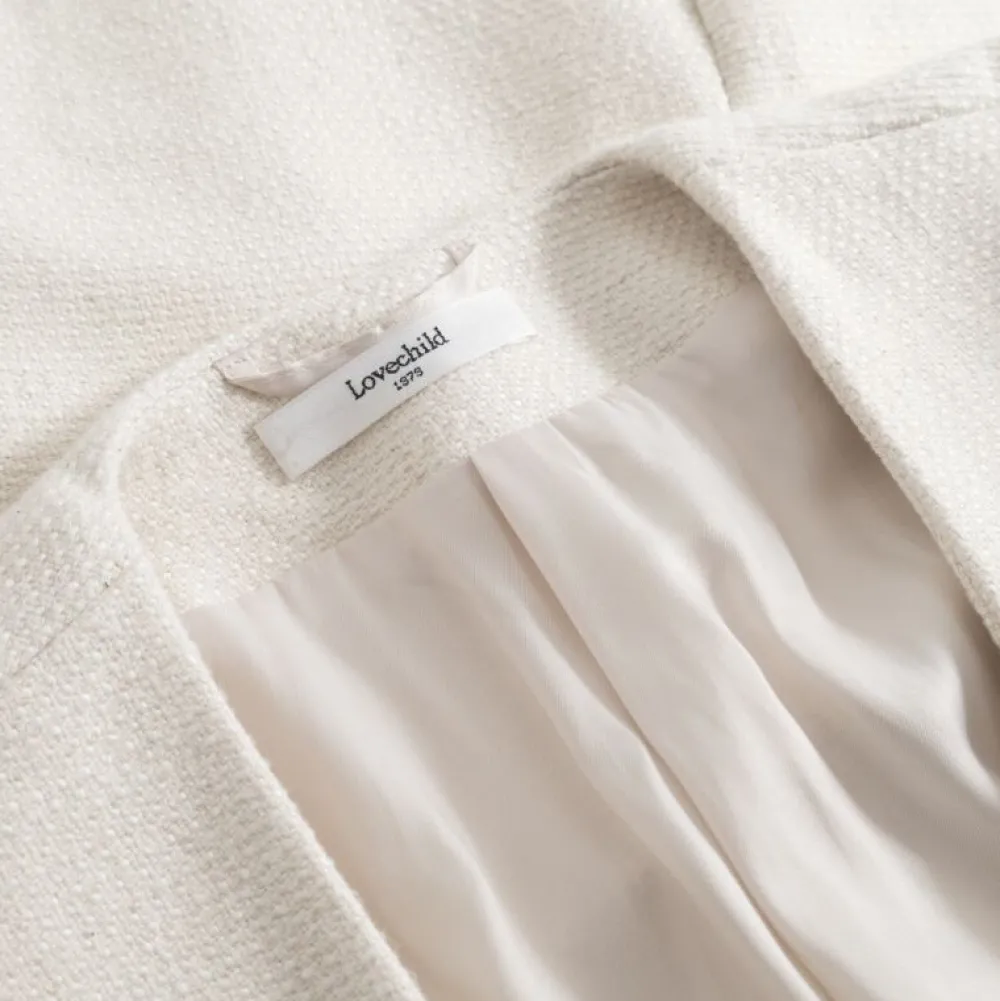 Jakken har indsnit foran og lukkes med knapper, mens de lige ærmer afsluttes med manchetter med knaplukning for et gennemført og stilrent udtryk. De paspolerede forlommer tilføjer både funktion og finesse, og den velafbalancerede silhuet gør jakken velegnet til både hverdag og pænere lejligheder.