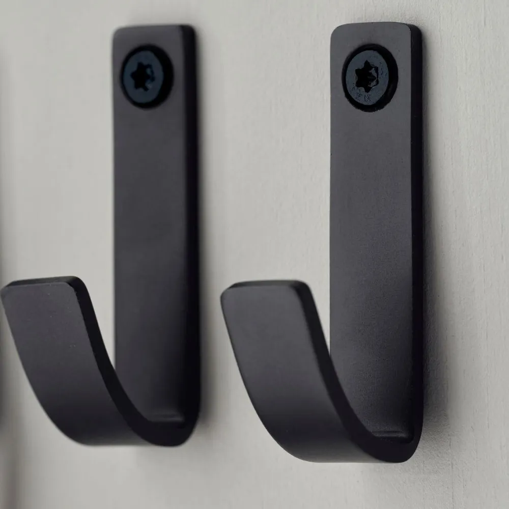 Små detaljer kan gøre en stor forskel på badeværelset. Dette sæt med tre knager i rustfrit stål er det tidløse valg, som tilføjer elegance og en følelse af ro til rummet. Knagerne har et minimalistisk og stilrent design med en børstet sort finish. Benyt ikke blot knagerne til håndklæder, men tilmed badekåber og kurve.