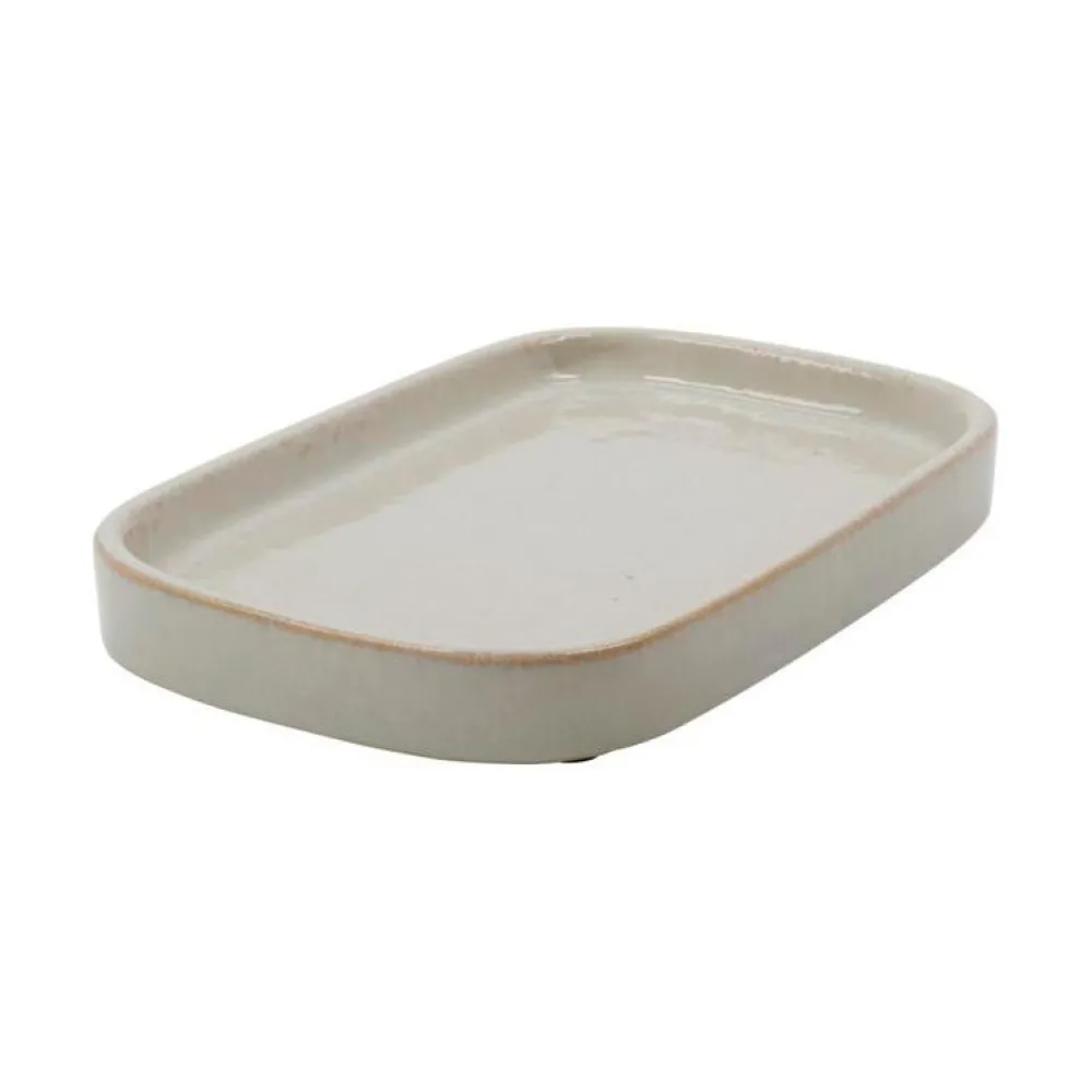 Hold styr på sæber, cremer og plejeprodukter med denne tidløse og minimalistiske bakke. Bakken er lavet af stentøj med en grå glasur, som skaber en rolig og naturlig stemning i hjemmet – uanset om den benyttes på badeværelset eller i køkkenet. Stil alt fra delikatesser, til creme og smykker på bakken, således de vigtigste hverdagsgenstande er inden for rækkevidde.