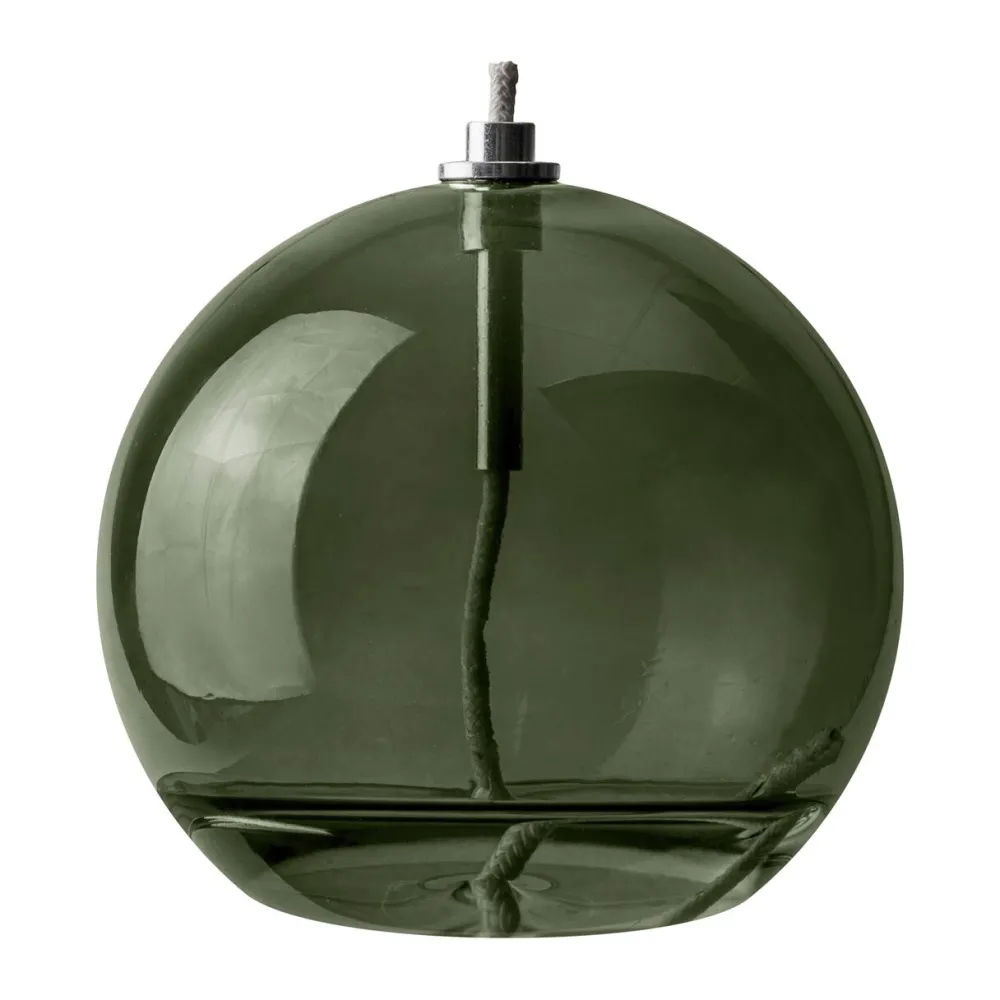 Minimalistisk olielampe, der skaber en sofistikeret atmosfære. Olielampen er udført i et dragende formsprog og i den fineste dybgrønne farvenuance, hvilket tilføjer en ekstra dimension af elegance til boligindretningen. Når flammen tændes, spredes et blødt, varmt lys, som skaber en beroligende og hyggelig stemning. Qua formsproget og farvenuancen er olielampen et iøjnefaldende midtpunkt – uanset placering heraf.