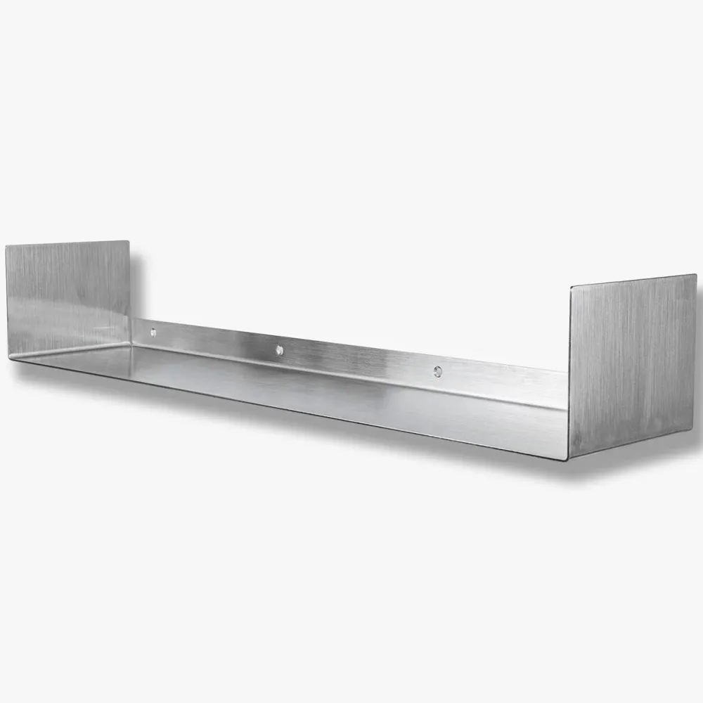 Stilren og vægtmonteret hylde, der kombinerer rene, rå linjer med et let og svævende udtryk. De subtile spil i stålets overflade tilfører et moderne og industrielt præg. Hylden er elegant i udtrykket, men robust i sin konstruktion, hvorfor den er ideel i ethvert rum, hvor kombinationen af funktion og æstetik ønskes. Hylden står smukt alene, men kan tilmed kombineres i flere niveauer for et markant og dynamisk udtryk.