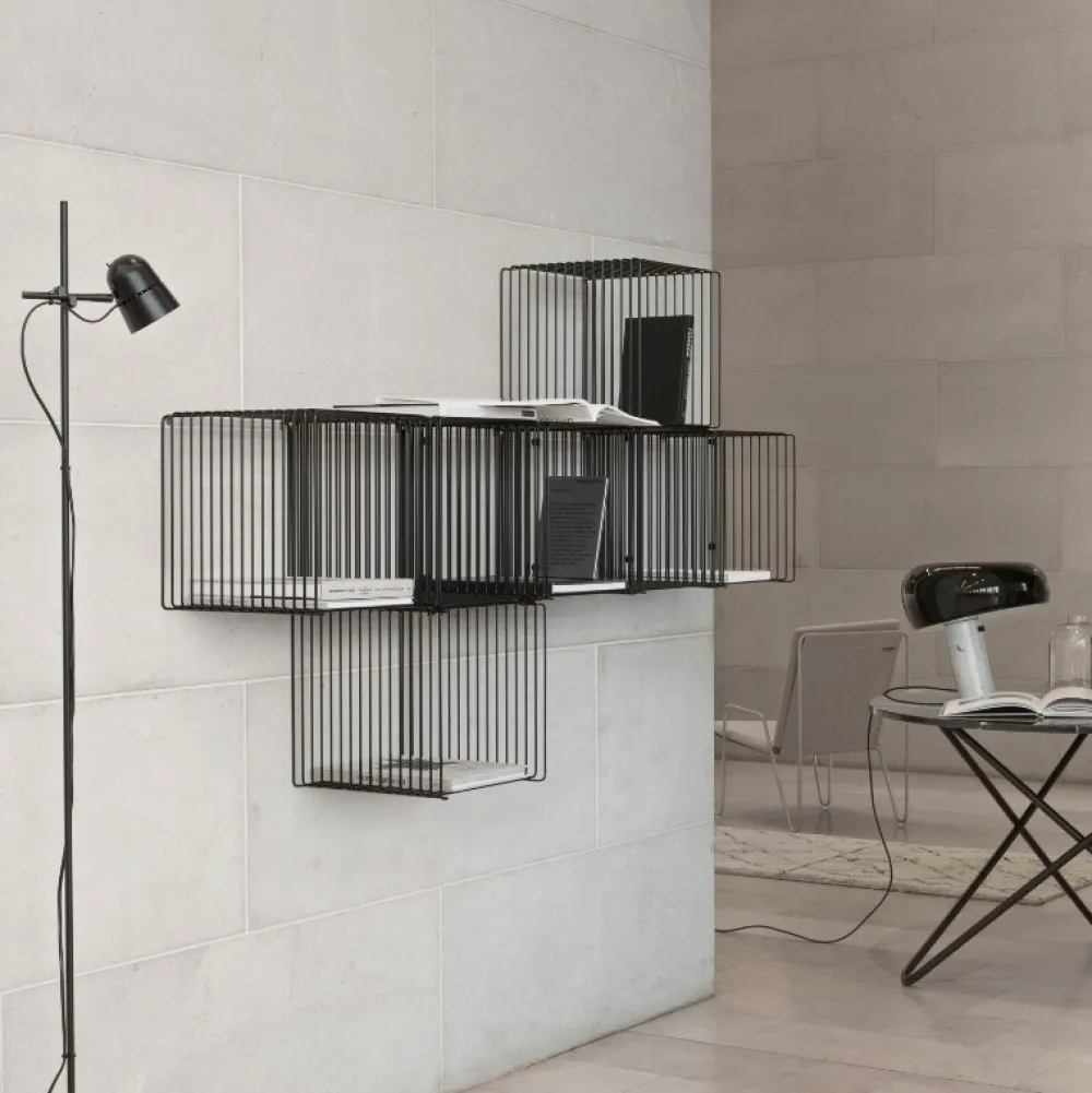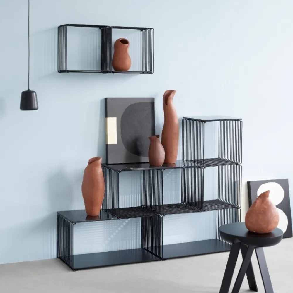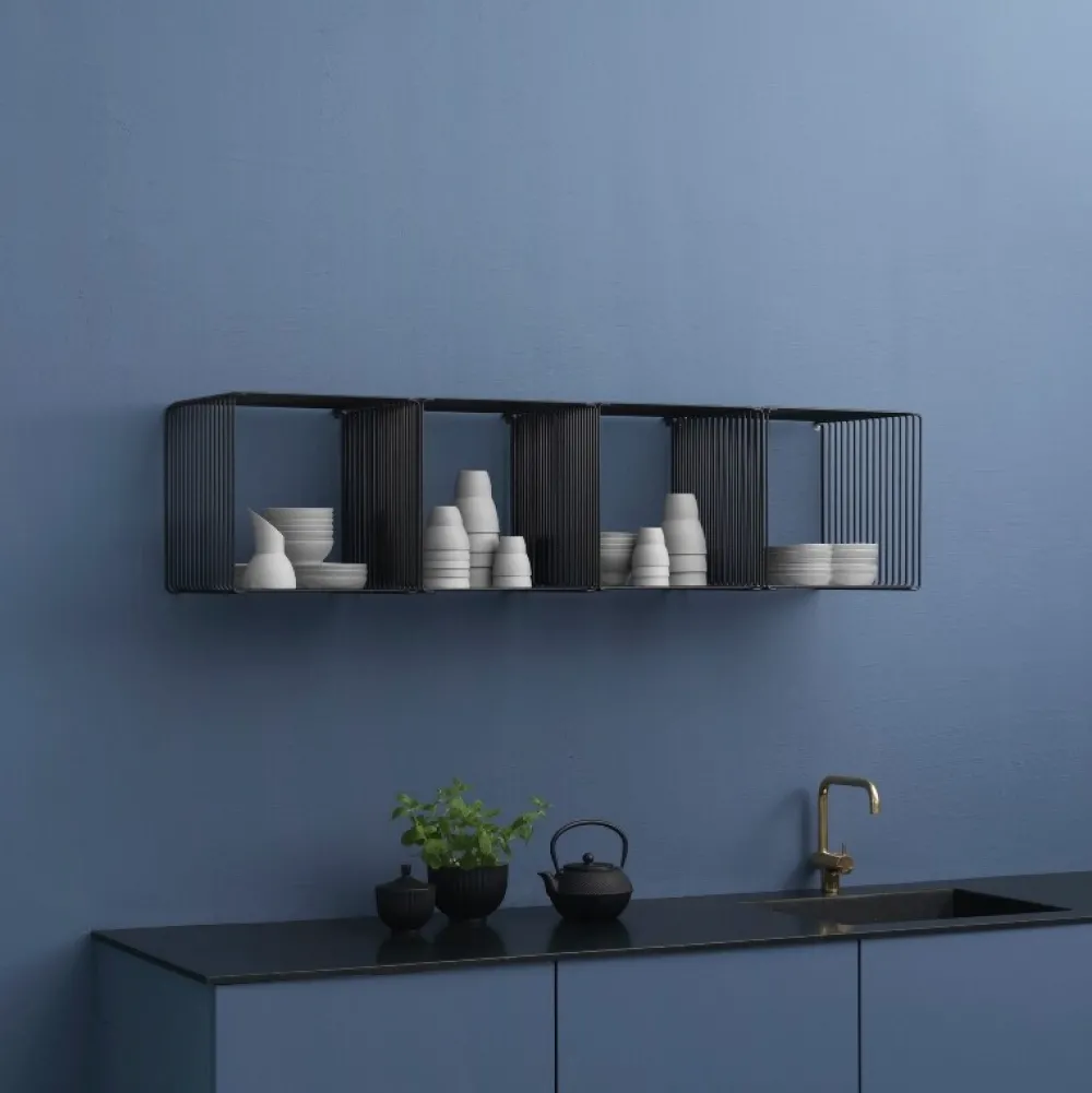 Brug den enkeltvis eller sammensæt flere moduler for at skabe et møbel der passer ind i din personlige boligindretning. Montana Verner Panton trådreolen kan bruges i flere af hjemmets rum på gulvet, væggen eller som rumdeler.