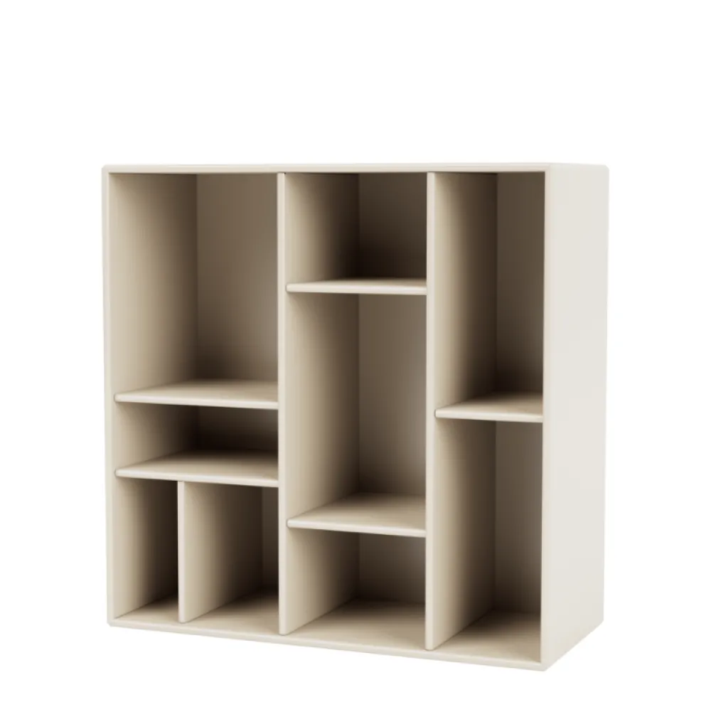 Et hyldemodul med en dekorativ inddeling designet af Peter J. Lassen. Compile er en ny og anderledes måde at bruge den klassiske Montana reol på. De mange anderledes inddelinger er med til at give reolen et kunstnerisk og skulpturelt udtryk, som passer perfekt ind i den moderne boligindretning. Compile kan bruges til opbevaring af alverdens ting, og hylderne indbyder til omrokering. Med Compile kan du nemt opbevare bøger, placere fine æsker, starinlys eller noget helt tredje. På den måde kan du skabe en anderledes og personlig indretning med Compile reolen.