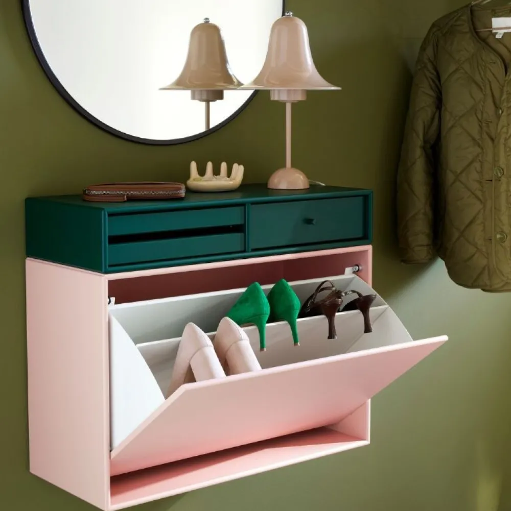 Makeup er et vægmonteret makeup-bord i dybde 30. Bordet kommer med en enkelt skuffe og to udtagelige bakker; perfekt til at opbevare og holde orden i din makeupsamling og accessories. Makeup passer elegant ind i både entréen og på soveværelset.