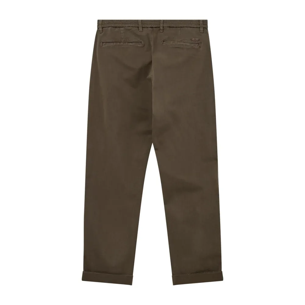 En moderne fortolkning af de klassiske chinos, skabt med fokus på både komfort og stil. De bløde læg foran og den regulære pasform giver bukserne et afslappet, men raffineret fald, mens den dybe grønne nuance tilfører et sofistikeret udtryk. Alsidige og elegante, kan de styles med en skjorte for et skarpt look eller med strik for en mere afslappet fremtoning. Et nøgleelement i garderoben, der forener funktionalitet og tidløs æstetik.