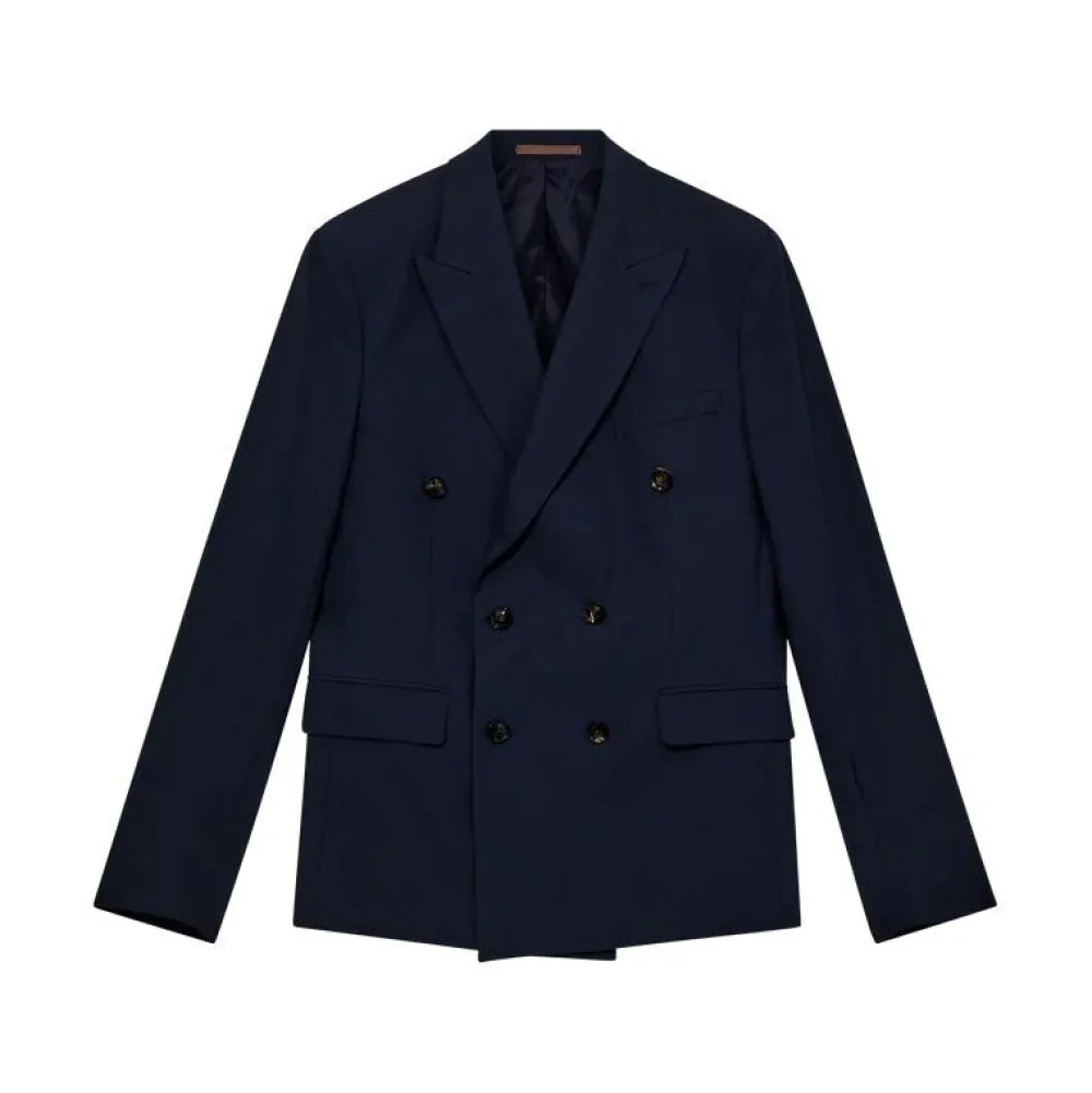 Løft garderoben med en blazer, der forener klassisk elegance med moderne komfort. Blazeren er syet i supleret uld med 4-vejs stretch, hvilket giver en uovertruffen bevægelsesfrihed og en følelse af luksus i hverdagen. Det double-breasted design med skarpt notch-revers tilfører et sofistikeret og tidløst udtryk, mens den afslappede pasform gør jakken alsidig nok til både formelle og uformelle anledninger. De elegante klaplommer fuldender looket og understreger det raffinerede håndværk, Mos Mosh Gallery er kendt for.