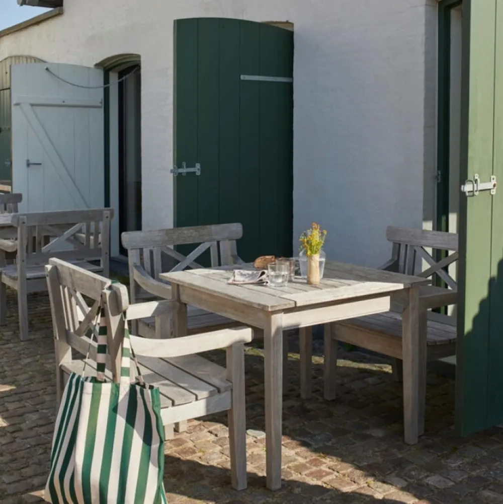 Enkelt og klassisk bord, der udtrykker en omhyggelig balance mellem nordisk nostalgi og moderne enkelhed. Det firkantede bord er fremstillet i FSC-certificeret teak og designet i samarbejde med Mogens Holmriis. Qua formgivningen herpå tilsikres plads til fire personer.