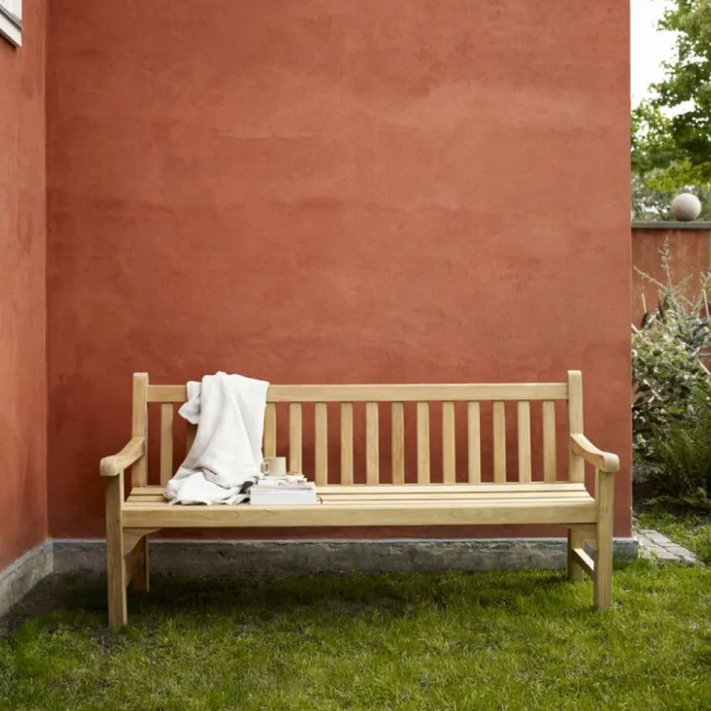 En flot, lang udendørs bænk i teaktræ. Havebænken fra Skagerak er et klassisk havemøbel, der med sit stilrene design vil holde i mange år fremover. England bænken er bygget i solidt træ, som er svært at slide op og egner sig godt til udendørs brug. Det enkle, engelskinspirerede design gør bænken fra Skagerak ideel til hyggelige stunder på terrassen og i haven.