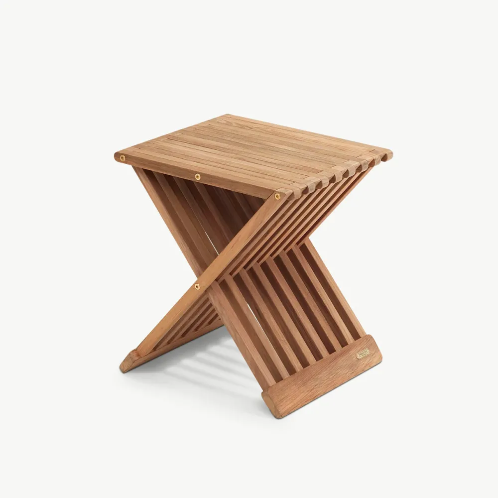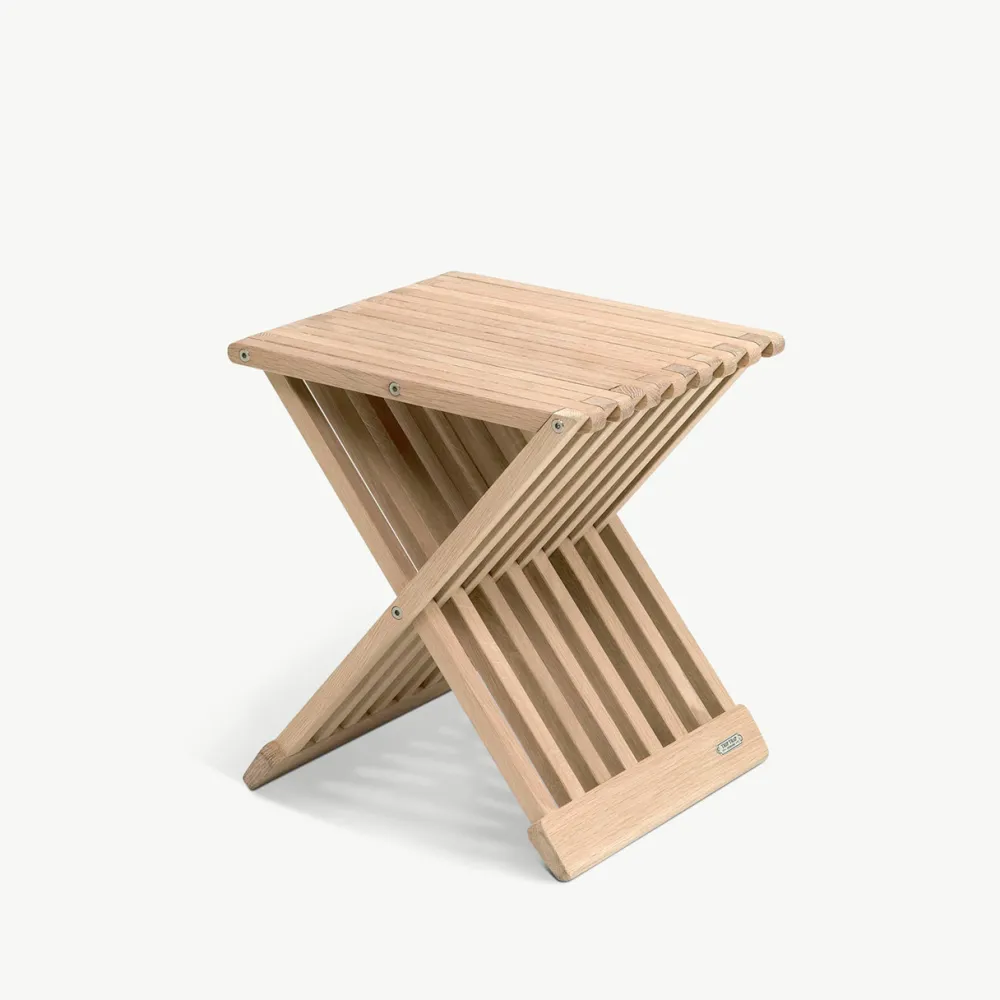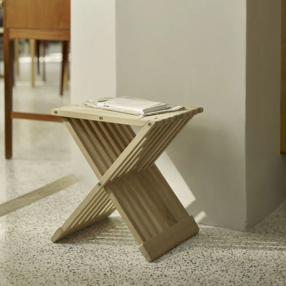 Sammenklappelig, solid og smuk Fionia taburet. Funktionel med mange anvendelsesmuligheder. En del af Skageraks Cutter-serie som er blevet international anerkendt.