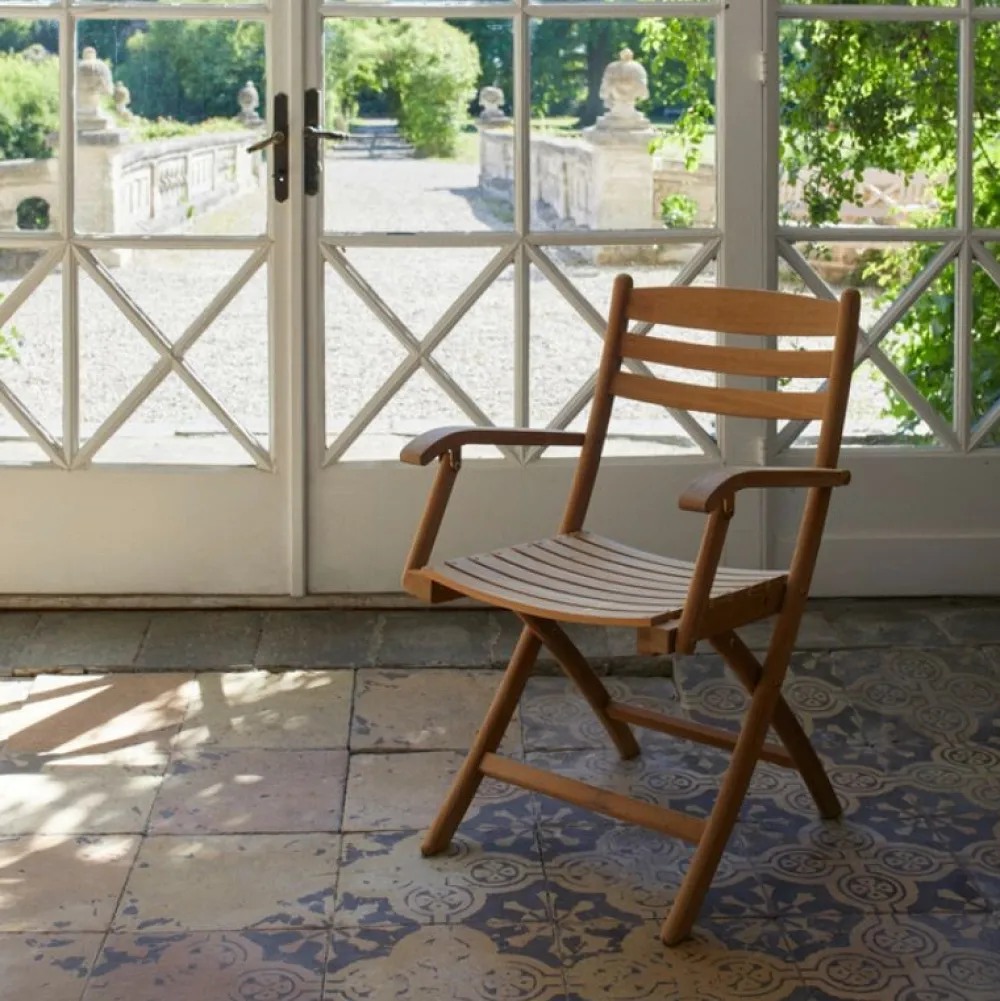 Elegant og komfortabel stol, der er yderst velegnet til uderummet. Selandia-serien er kendt for sine karakteristiske lette kurver og sit elegante nordiske design, der diskret refererer til Frankring og lange sommernætter under åben himmel. Stolen er lavet i FSC-certificeret teak og designet i samarbejde med Anders og Lars Hegelund. Stolen optager minimal plads, når den er sammenklappet.