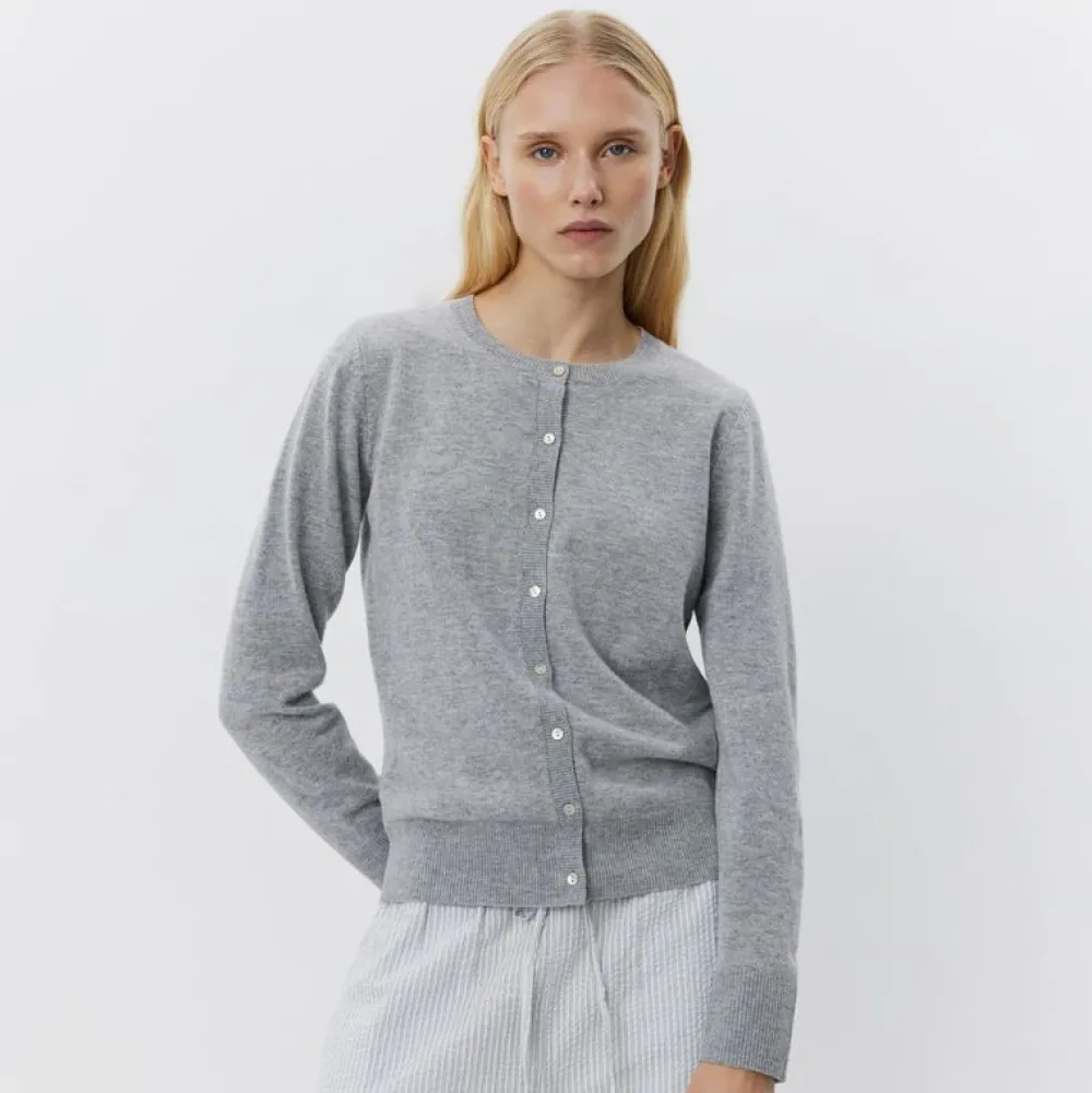 Cardiganen har et enkelt og tidløst design med lange ærmer, regular fit og knaplukning foran, hvilket gør den nem at style – både lukket over en top eller åben over en kjole eller skjorte. Det grå ulddesign gør den perfekt til både arbejde og hverdagsbrug, hvor du ønsker et elegant, men afslappet udtryk.