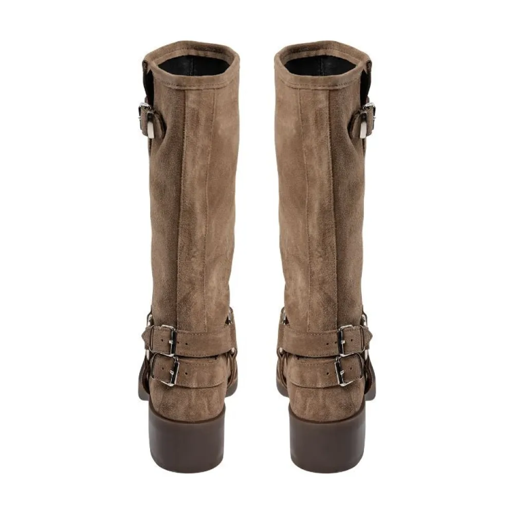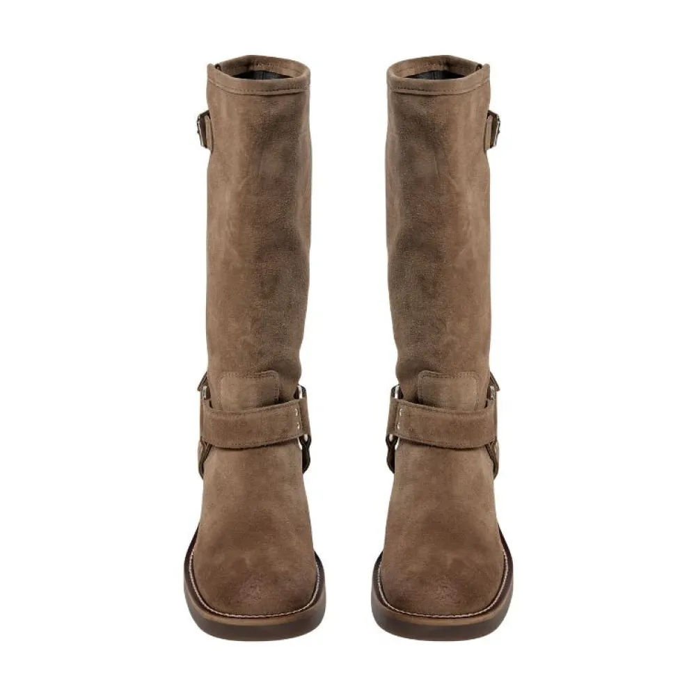 Disse støvler i brunt ruskind fra Sofie Schnoor er et stilfuldt valg til dig, der ønsker både komfort og karakter i din garderobe. Designet kombinerer rå detaljer med feminint udtryk: Spænder og remme langs skaftet giver støvlen et markant look, mens det bløde ruskind og den afrundede snude tilfører elegance og alsidighed.
