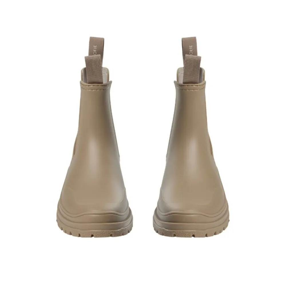 Disse gummistøvler fra Sofie Schnoor kombinerer praktisk funktion med et stilfuldt twist. Designet er enkelt, elegant og med et moderne og feminint udtryk. Støvlerne er fremstillet i et slidstærkt og 100% vandtæt materiale, der effektivt holder dine fødder tørre – uanset om du bevæger dig gennem byens regnfulde gader eller naturens mudrede stier.