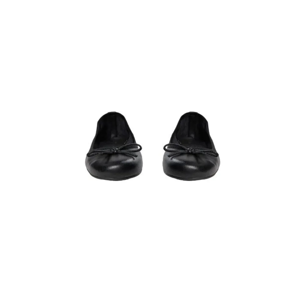 Denne elegante ballerinasko fra Sofie Schnoor er en tidløs klassiker med et feminint twist. Skoen er holdt i en smuk sort farve og prydes af en fin sløjfe over vristen, som tilføjer et sødt og sofistikeret udtryk. Det enkle design gør skoen alsidig – perfekt til både hverdag, arbejde og festlige anledninger.